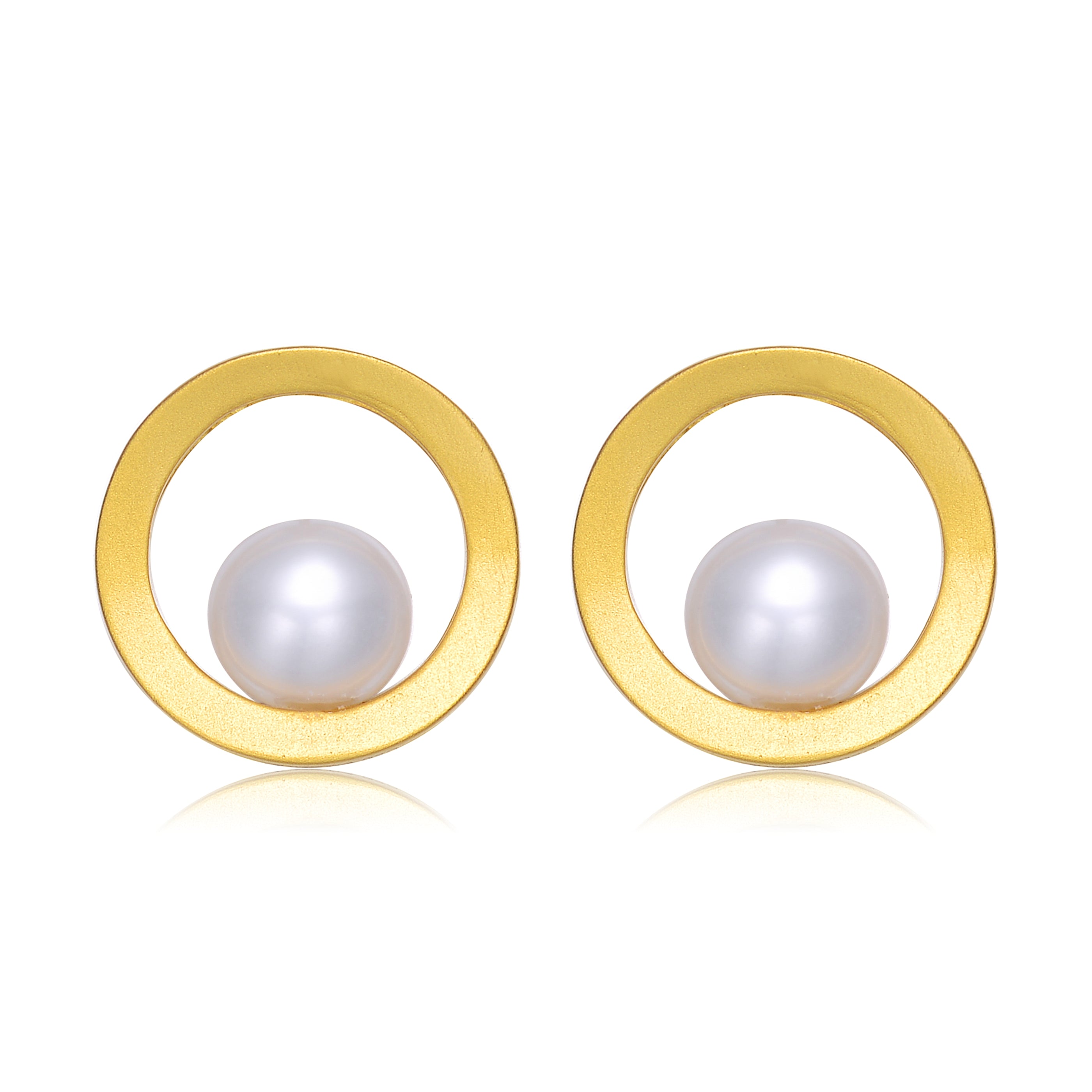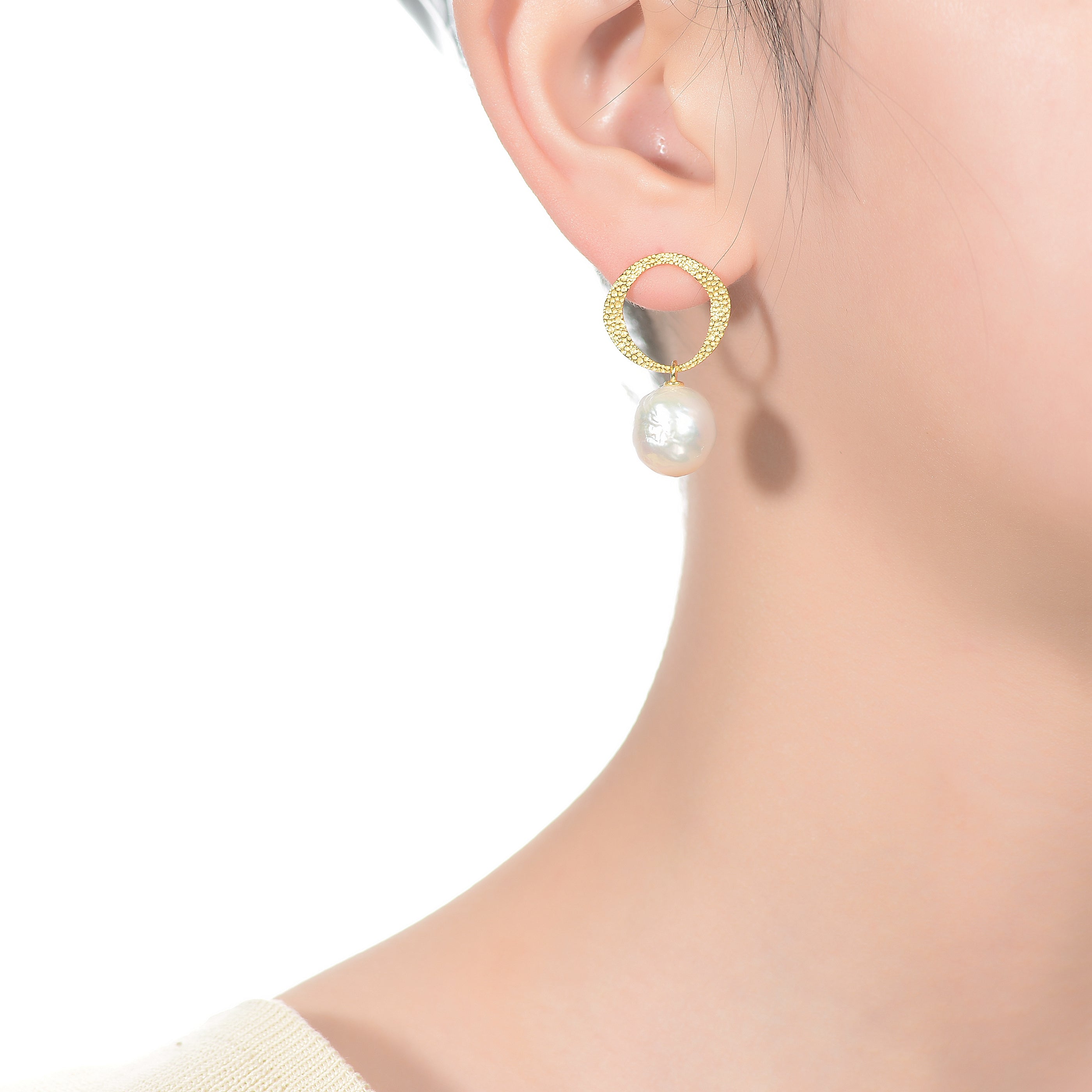 Brigitte Boho Golden Triple Circle Pearl Earring