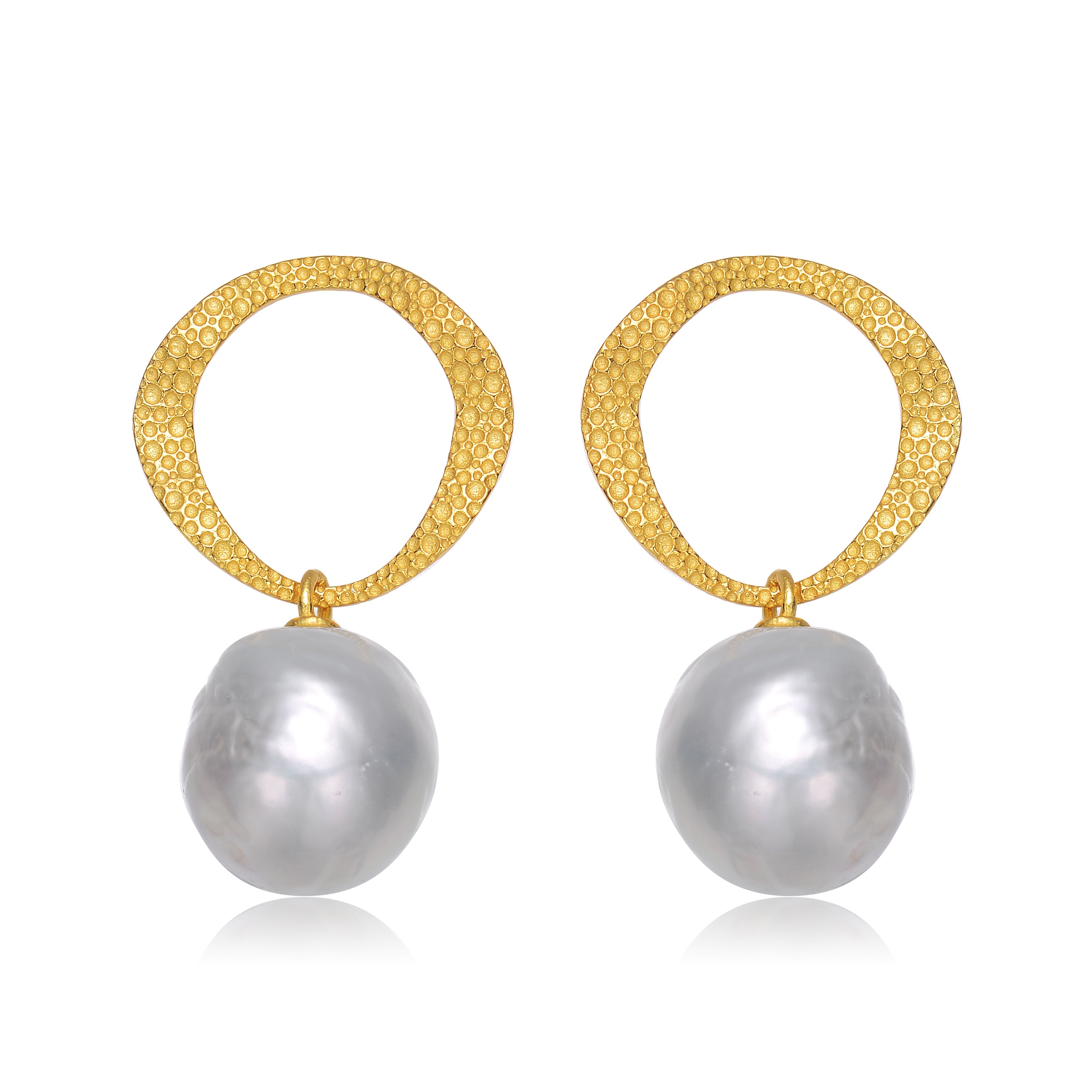 Delphine Brushed Teardrop Golden Pearl Earrings