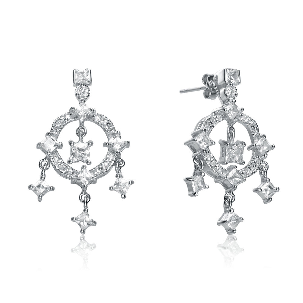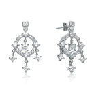 These stunning small chandelier earrings are crafted from high-quality sterling silver and adorned with multiple cubic zirconia stones. The intricate design features a central circular motif encrusted with sparkling CZ stones, with additional larger CZ stones in star shapes dangling elegantly. The combination of the circular and star elements creates a captivating and luxurious look, perfect for adding a touch of glamour to any outfit. These earrings are ideal for formal occasions or as a statement piece, offering both elegance and sophistication. The secure backings ensure they stay comfortably in place, making them a beautiful and practical addition to any jewelry collection.