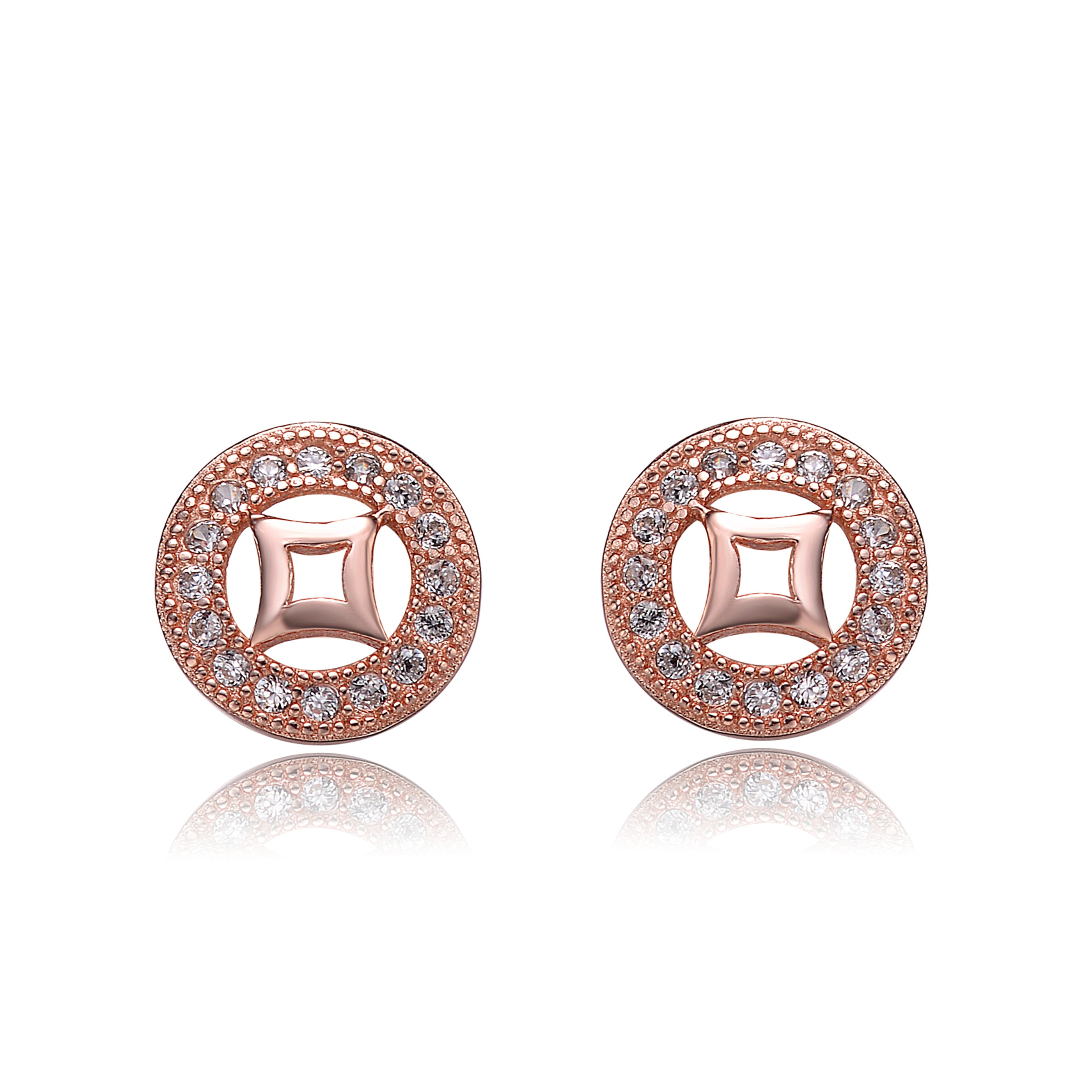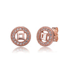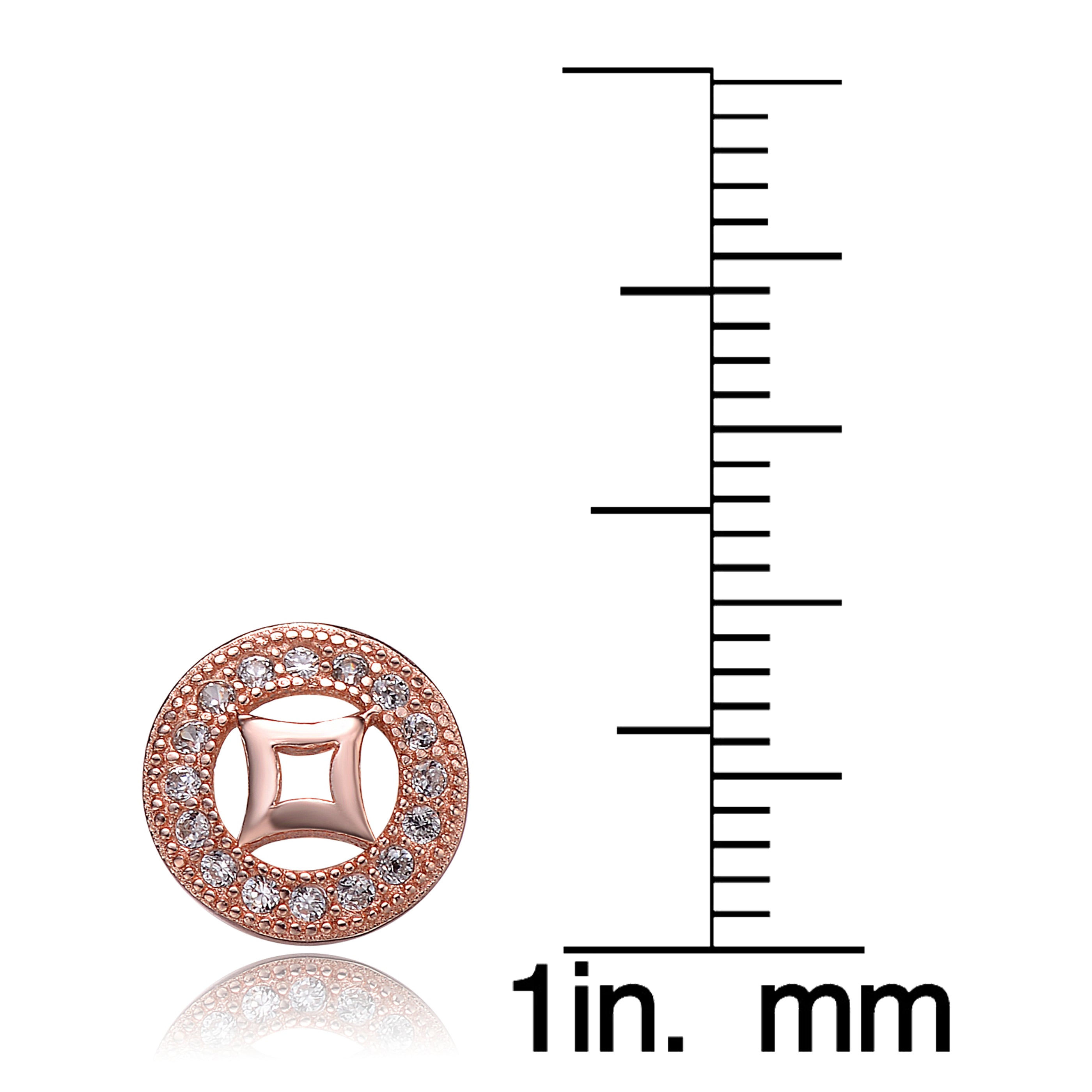 These enticing, brushed rose-gold round stud earrings are decorated with white round-cut cubic zirconia stones. Crafted of 0.925 sterling silver, the earrings secure with butterfly clasps.