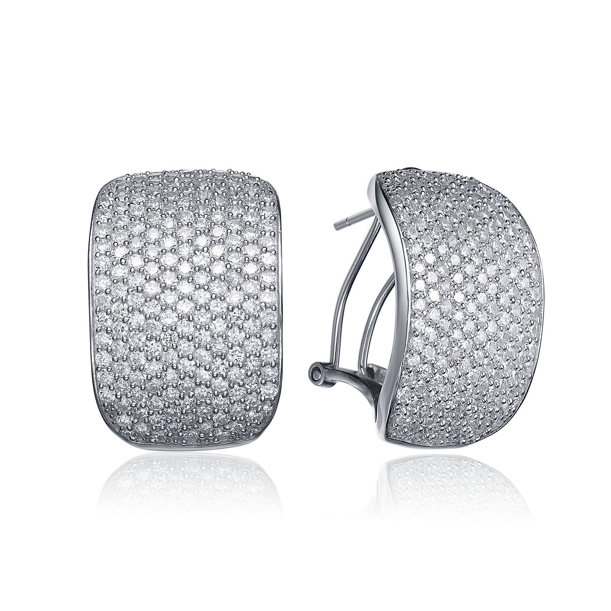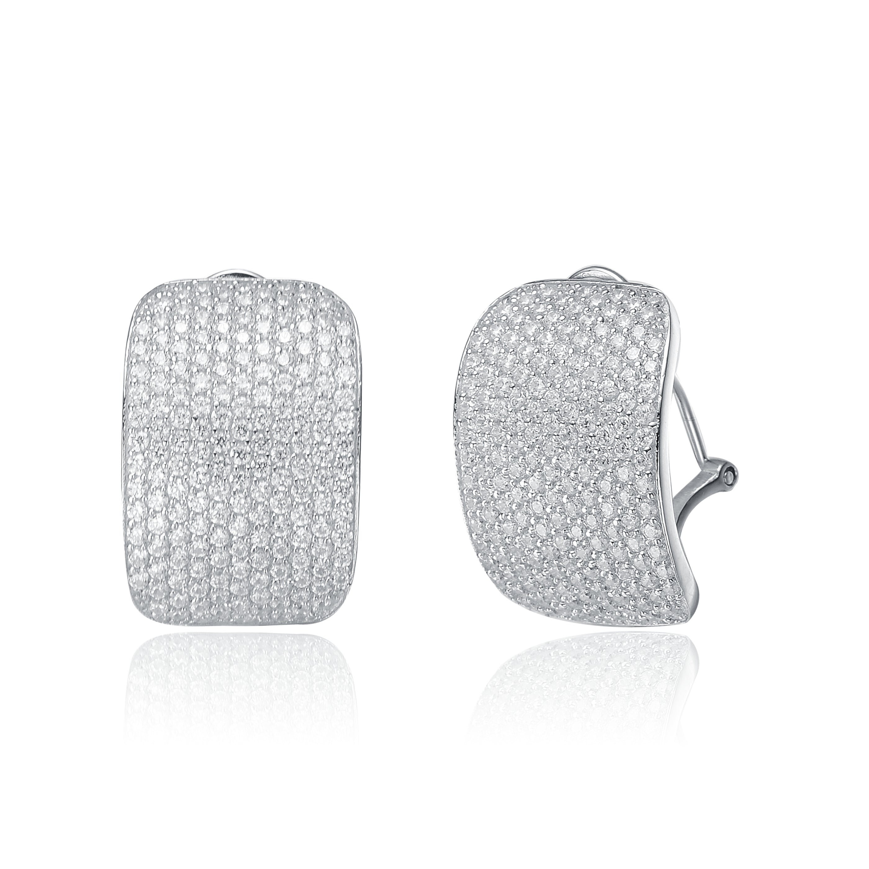 Sleek and sophisticated, these square-shaped sterling silver earrings are adorned with brilliant round-cut cubic zirconia stones set in classic prong settings for maximum sparkle. Finished in polished rhodium plating and secured with comfortable omega back closures, this timeless design offers elegance with a modern edge. Available in your choice of Rose or White.