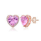 Stylish Sterling Silver 18K Rose Plated Pink Cubic Zirconia Heart Stud Earrings. This elegant pair of earrings features interesting heart design, with center made out of large pink cubic zirconia stone and accented with small clear round cubic zirconia stones on the outer side. Crafted of Sterling Silver with 18K Rose Plating and it is secured with butterfly closure. Perfect piece of jewelry for stylish combinations. This item also makes a sensational gift.
