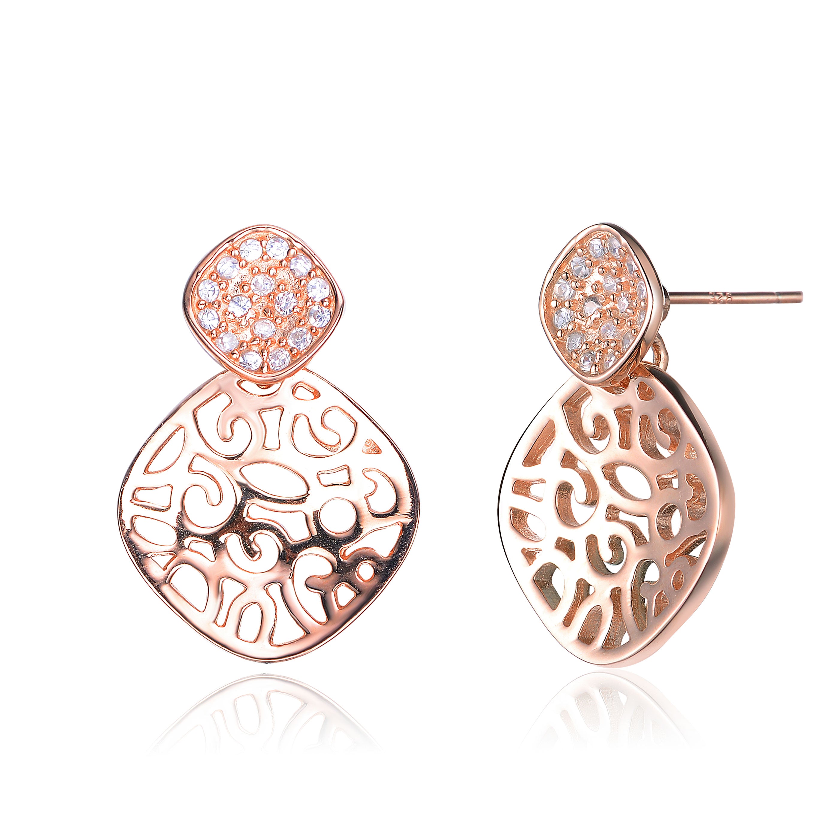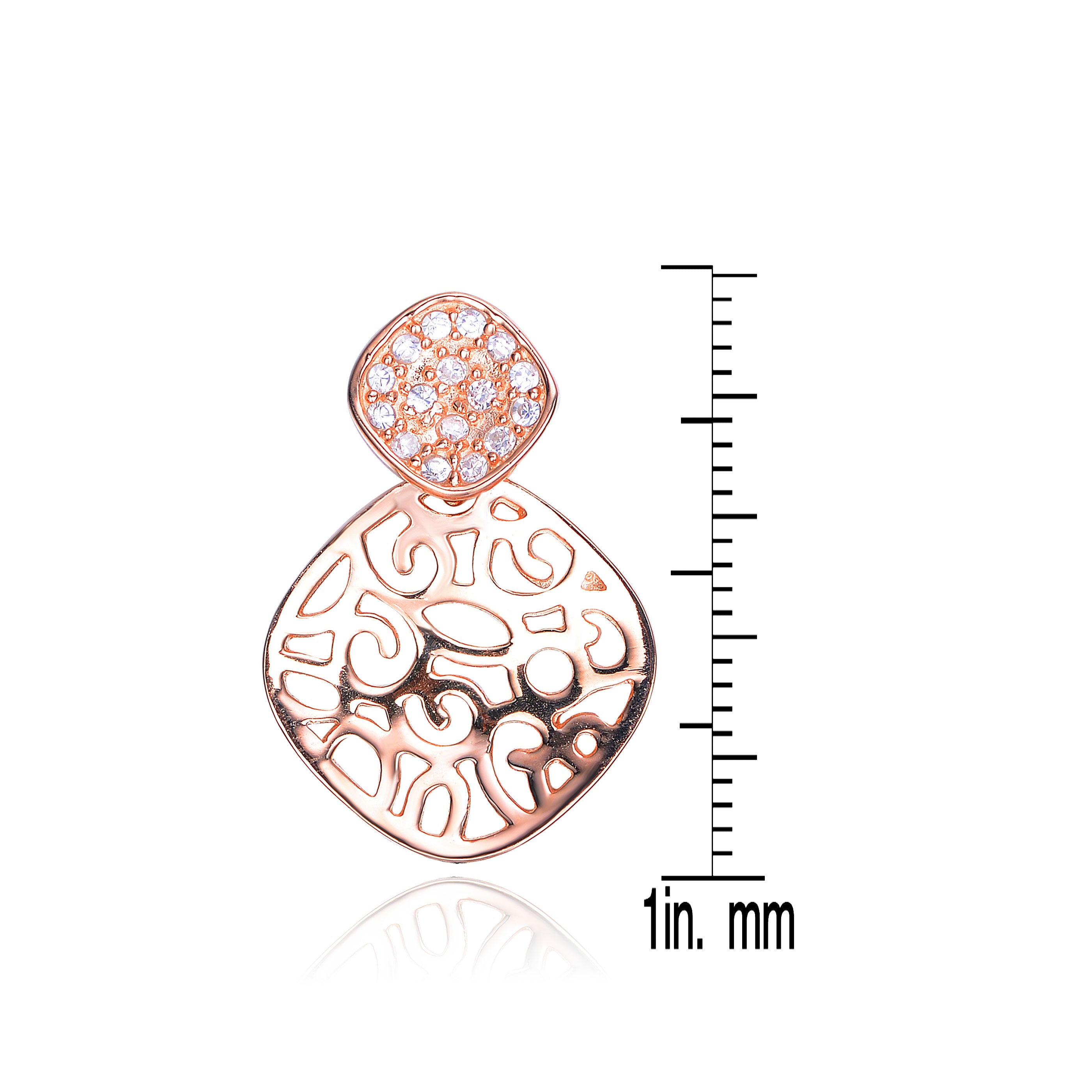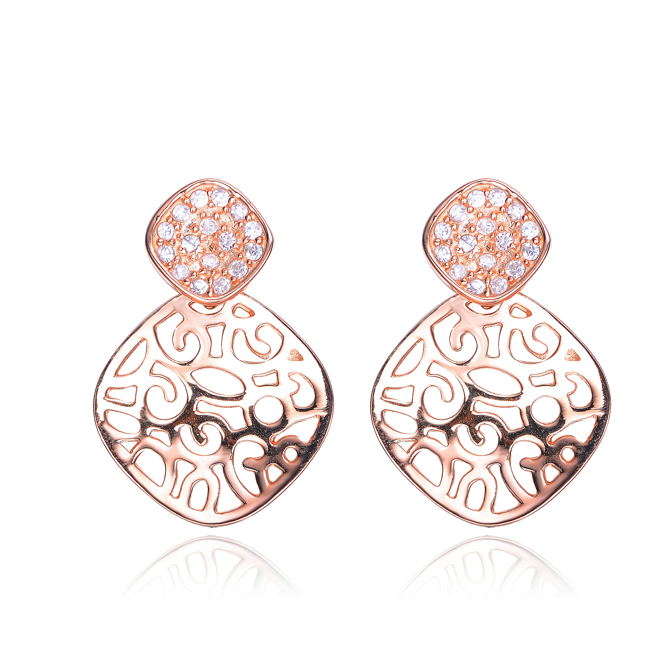 These beautiful earrings use a pattern that is hammered into rose gold overlay and accented with clear cubic zirconia stones. This sophisticated set is perfect for a night out.