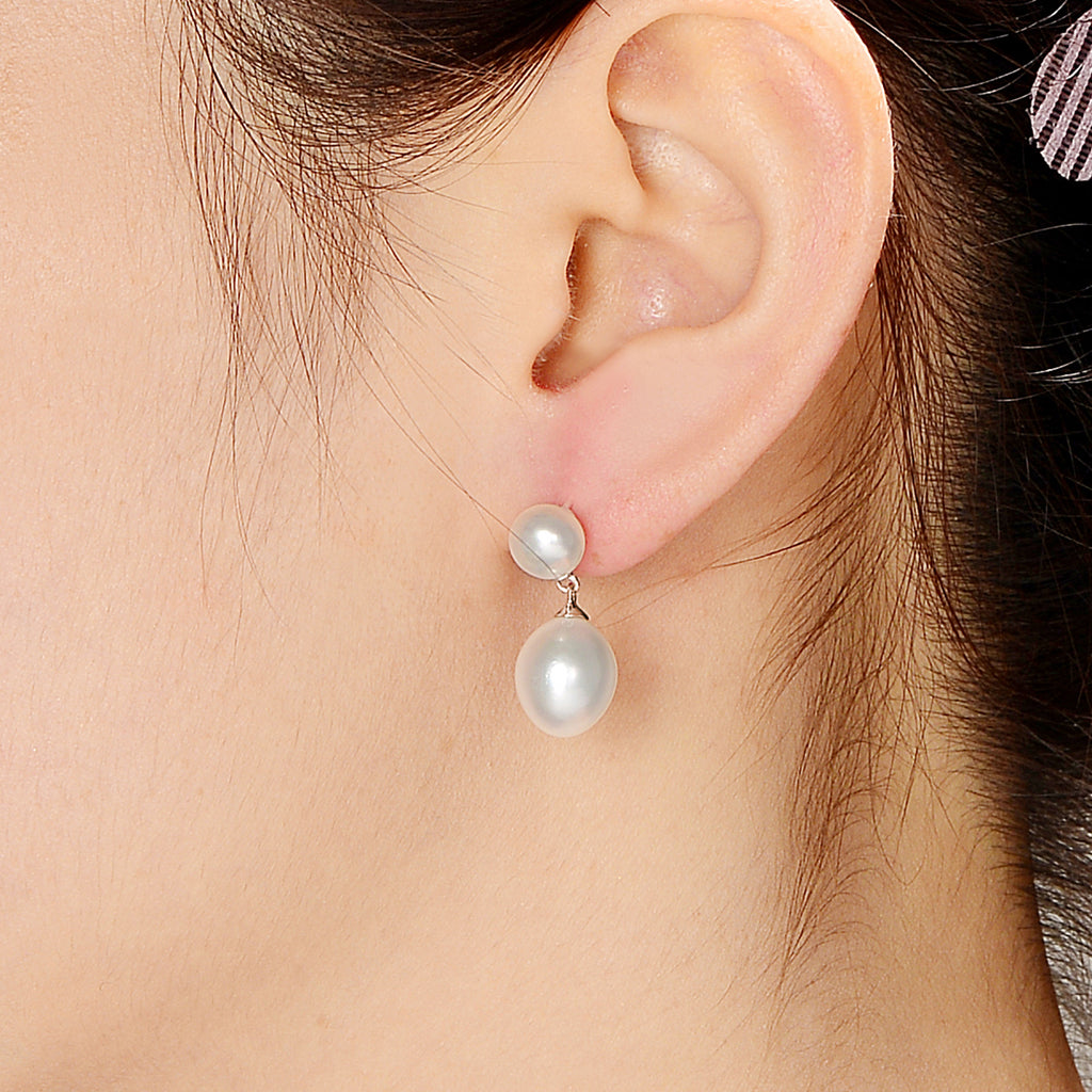 These dainty earrings showcase white Freshwater pearls, dangling from a sterling silver cable loop. Crafted of .925 sterling silver, the earrings secure with a butterfly clasp