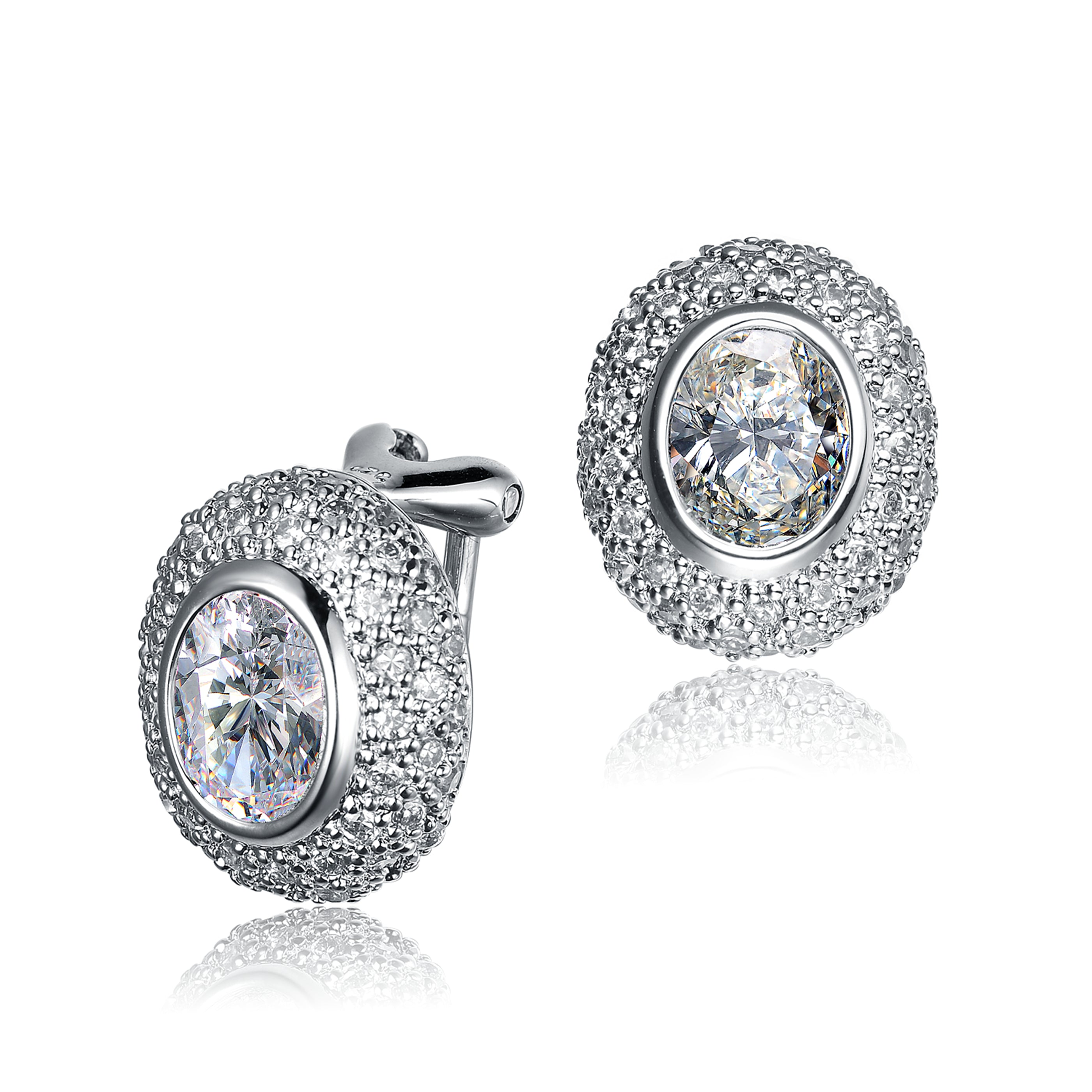 Don’t miss out on these ritzy button earrings. At the heart of them is a clear cubic zirconia solitaire surrounded by a halo of clear cubic zirconias.