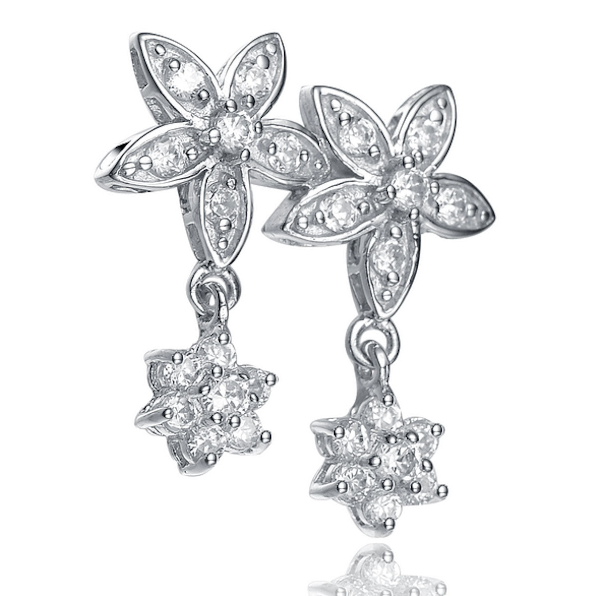 Jewelry collectors who prefer a dainty look will love these sterling silver earrings. Clear cubic zirconia stones form a delicate flower shapes.