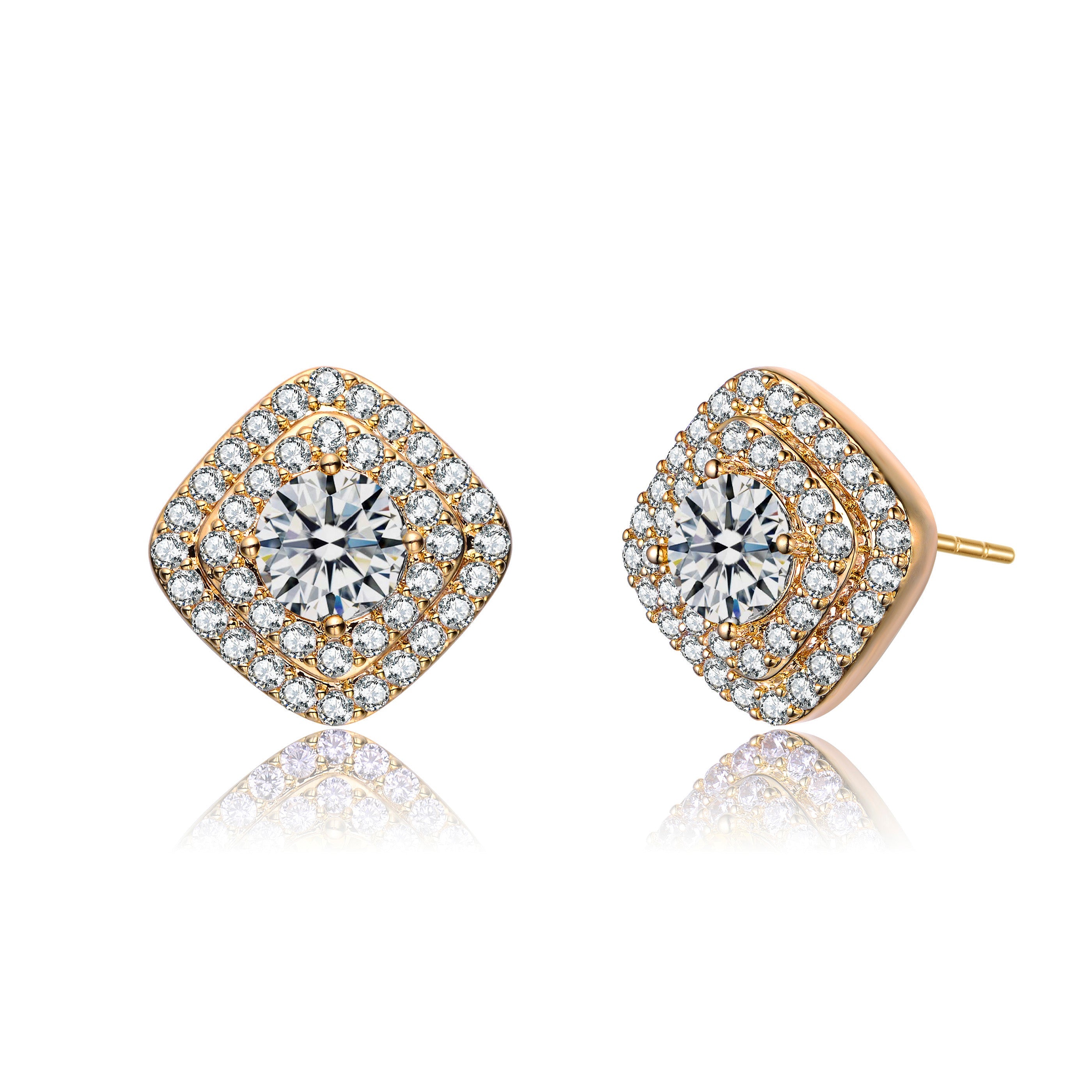 Everyone should own a pair of elegant stud earrings and these are flawless. They feature pave cubic zirconia stones surrounded by two halos of clear cubic zirconias.