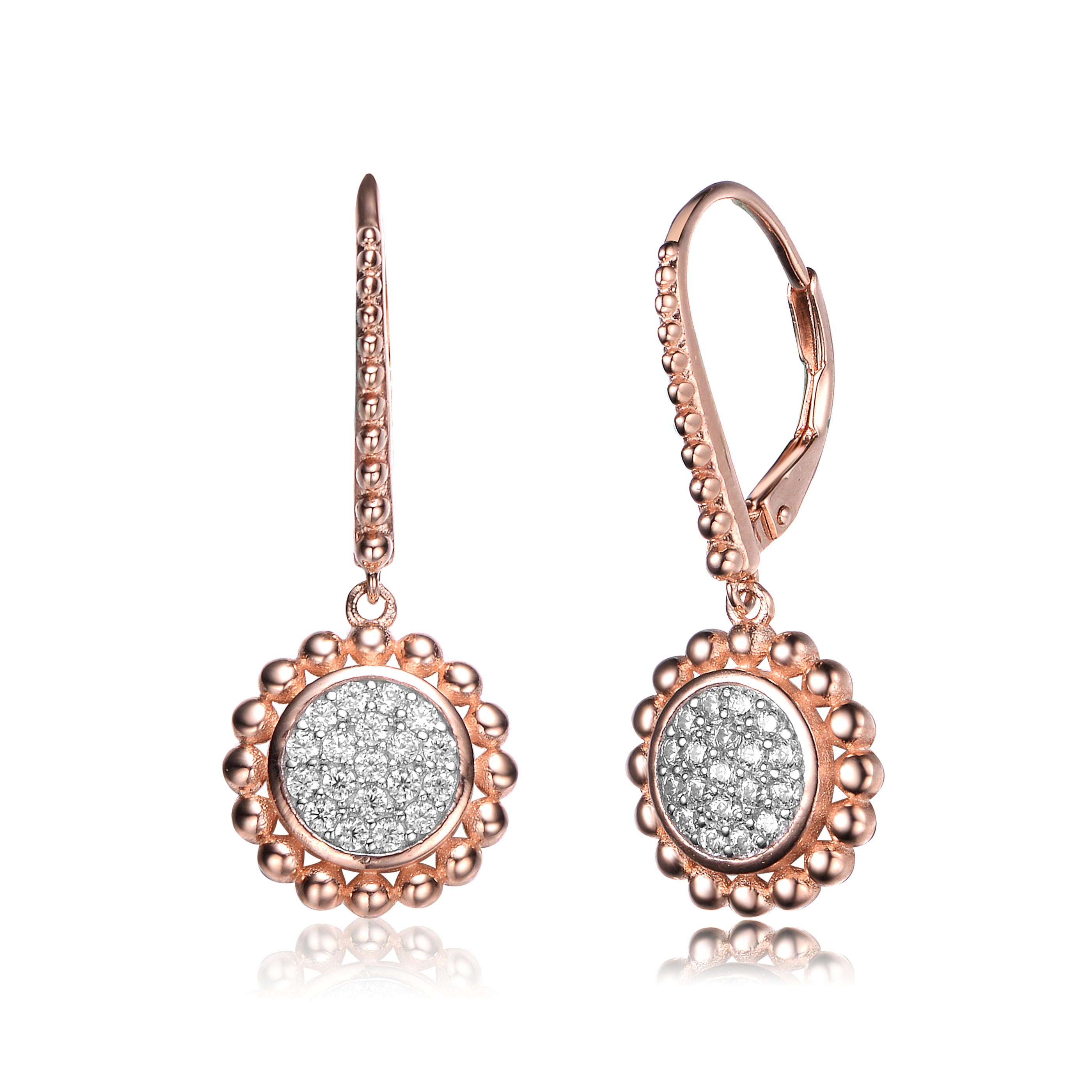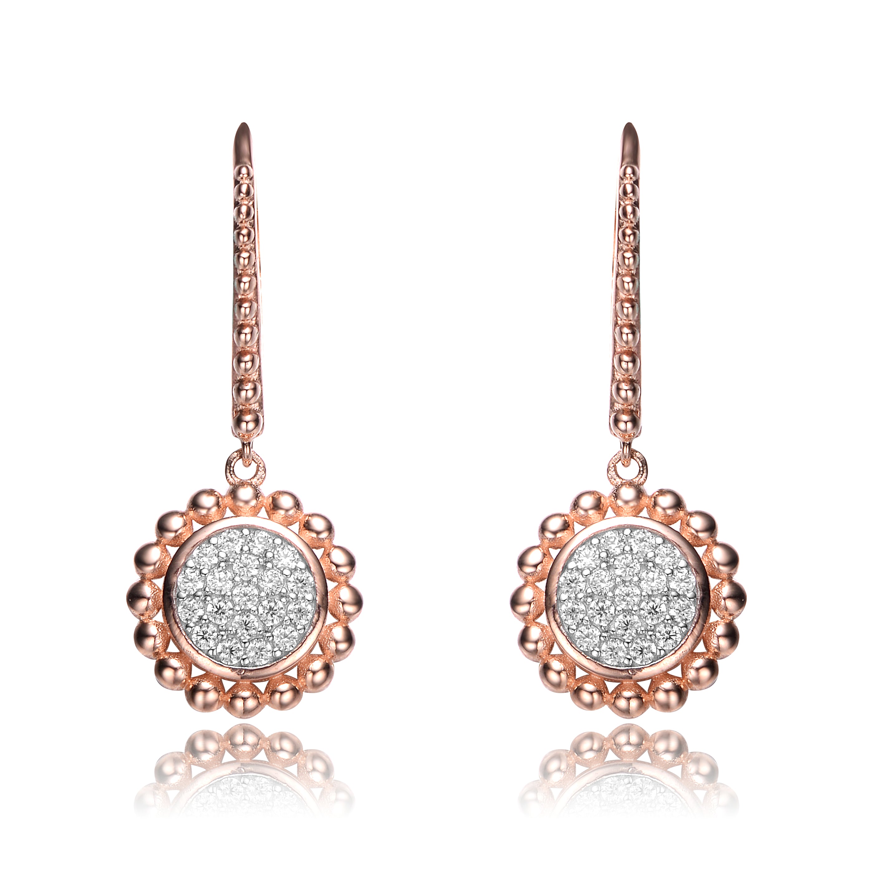 Dazzle the crowd by wearing these rose gold plated .925 sterling silver with sparkling white cubic zarconia stones accented with small cubic zirconia on these stylish earrings. It has an attribute of lovely white encrusted cubic zirconia stones on a fine .925 sterling silver.