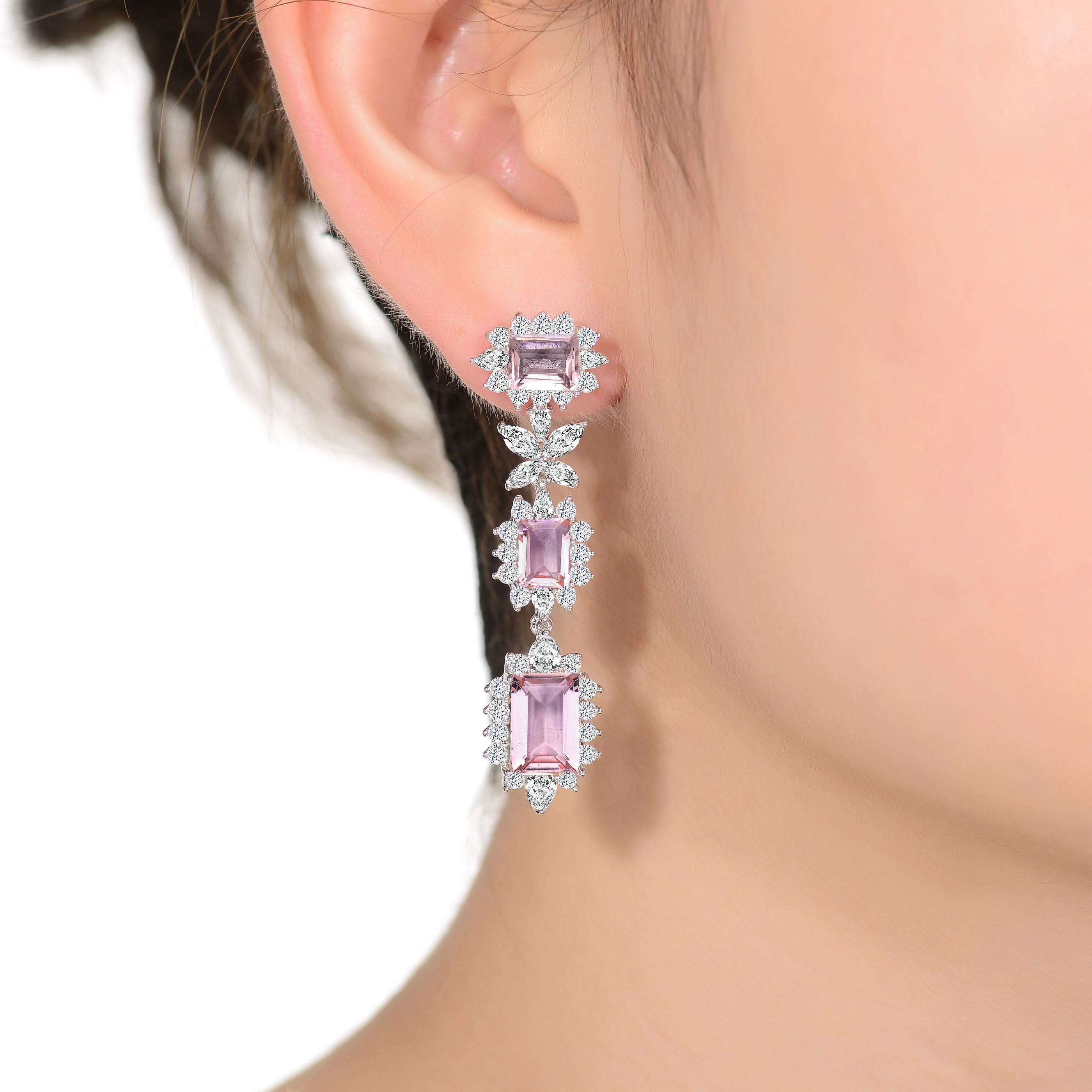 Palais Rose Morganite Couture Cushion Drop Earrings