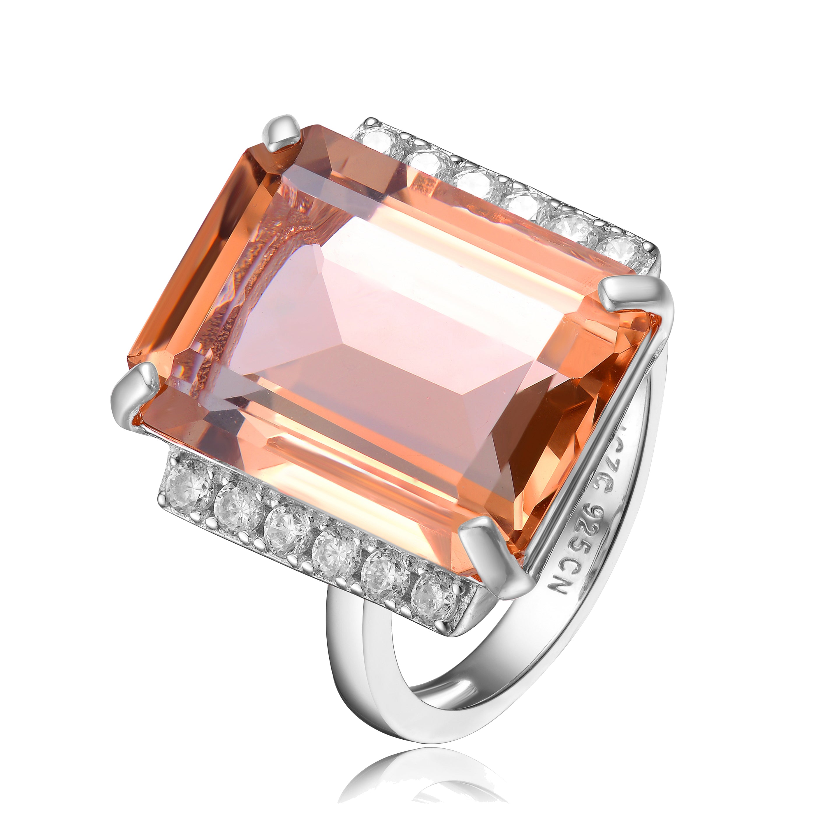 Sterling Silver Rose Gold Plated Morganite Cubic Zirconia Couture Cocktails Ring