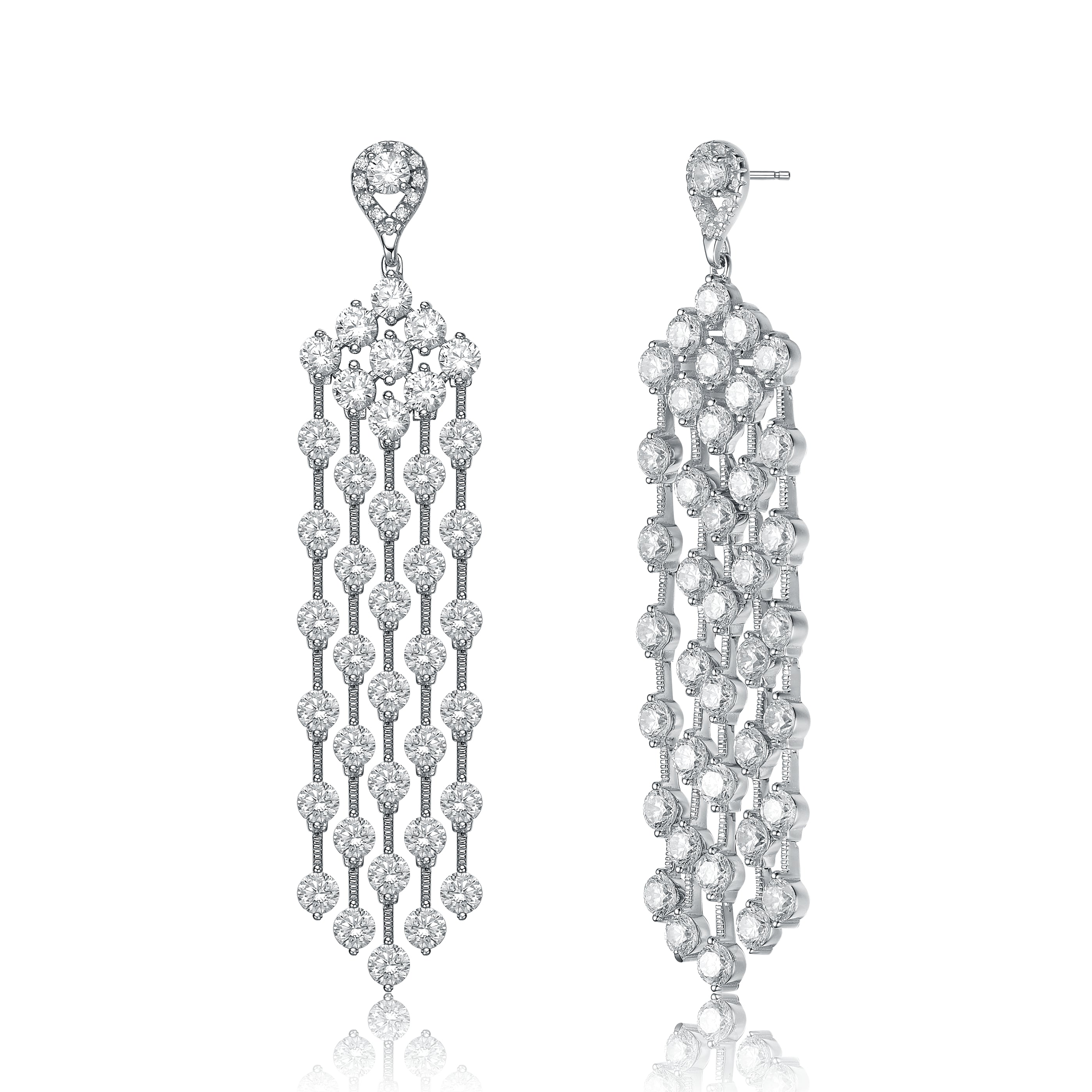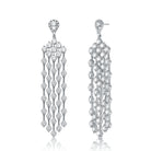 Sterling Silver with Cubic Zirconia Five Row Chandelier Fringe Vintage Linear Dangle Earrings. Make a glamorous entrance wearing these stunning chandelier earrings featuring sparkling round brilliant cut -like cubic zirconias in decadent linear fringes, beautifully placed in graduated size as they swing with elegance. Butterfly backs keep these pretty earrings securely on the ears when worn, all beautifully crafted in durable white gold plating. Gift these exquisite earrings to any loved one as a cherishable present. Item