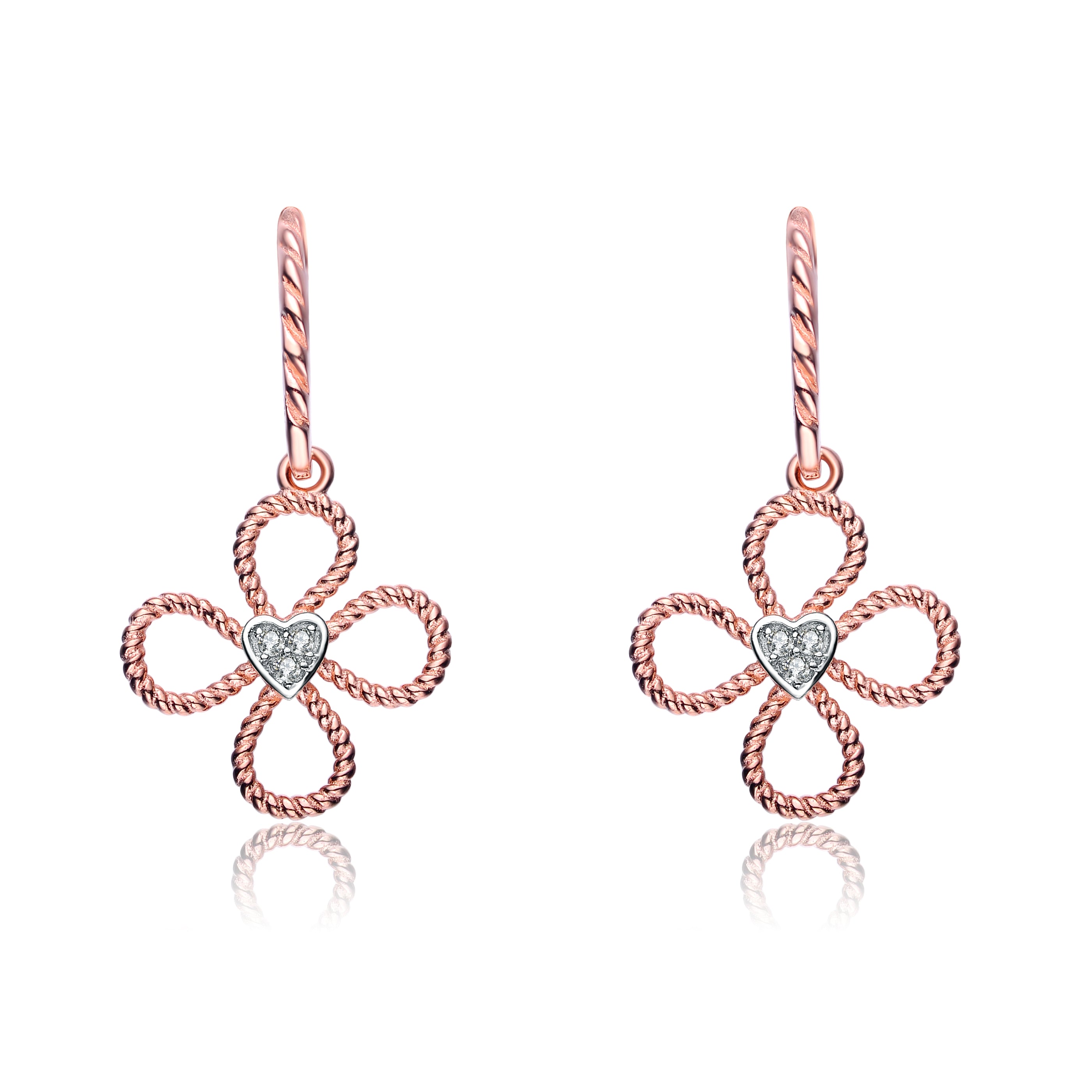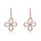 Rose gold us used to form four petals around a center of pave clear cubic zirconia stones. These earrings make a nice gift.