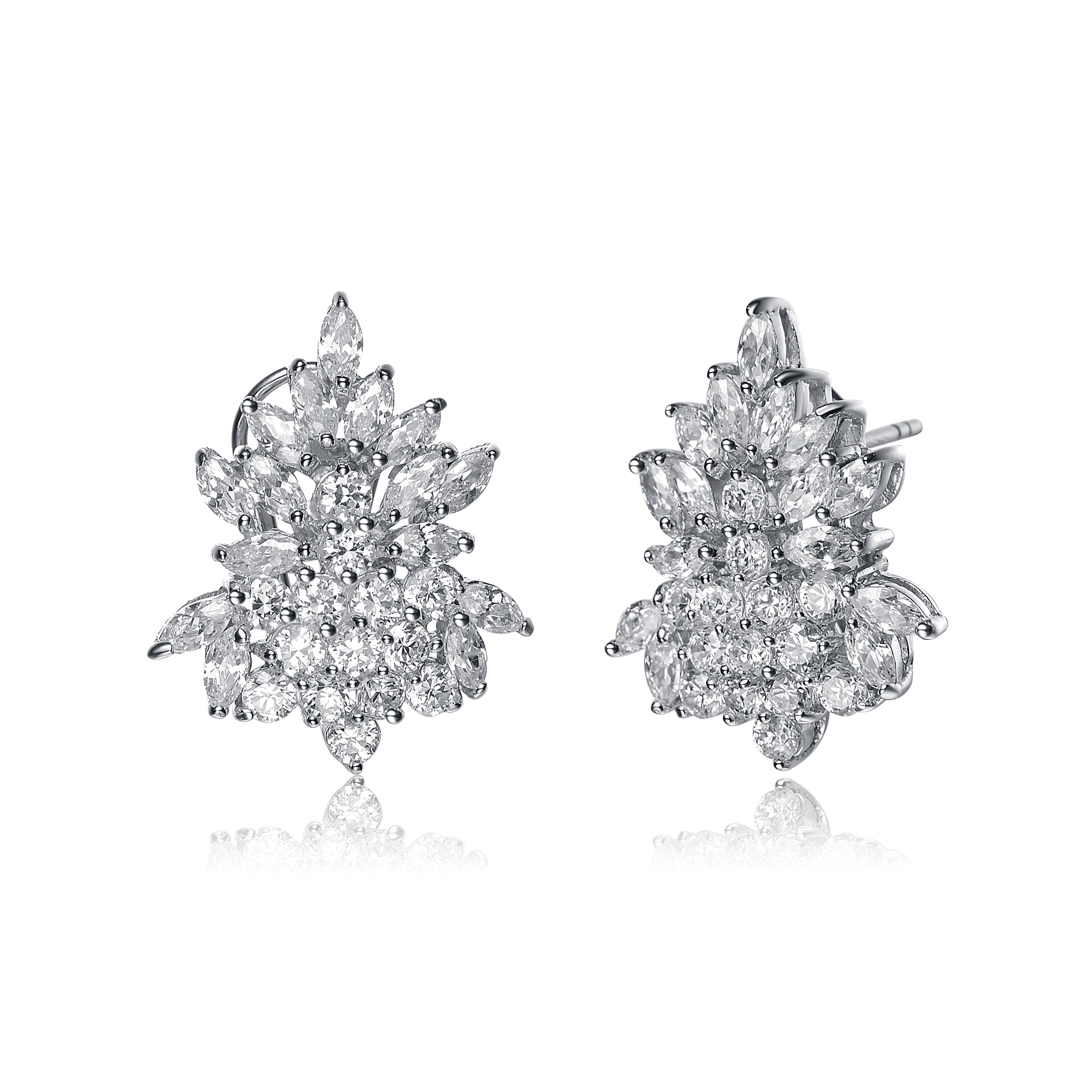 Sterling Silver White Gold Plated Clustered Cubic Zirconia Stones. These elegant cluster earrings are decorated with dazzling round and marquise-cut cubic zirconia stones. Crafted of .925 sterling silver, the earrings secure with omega clasps.