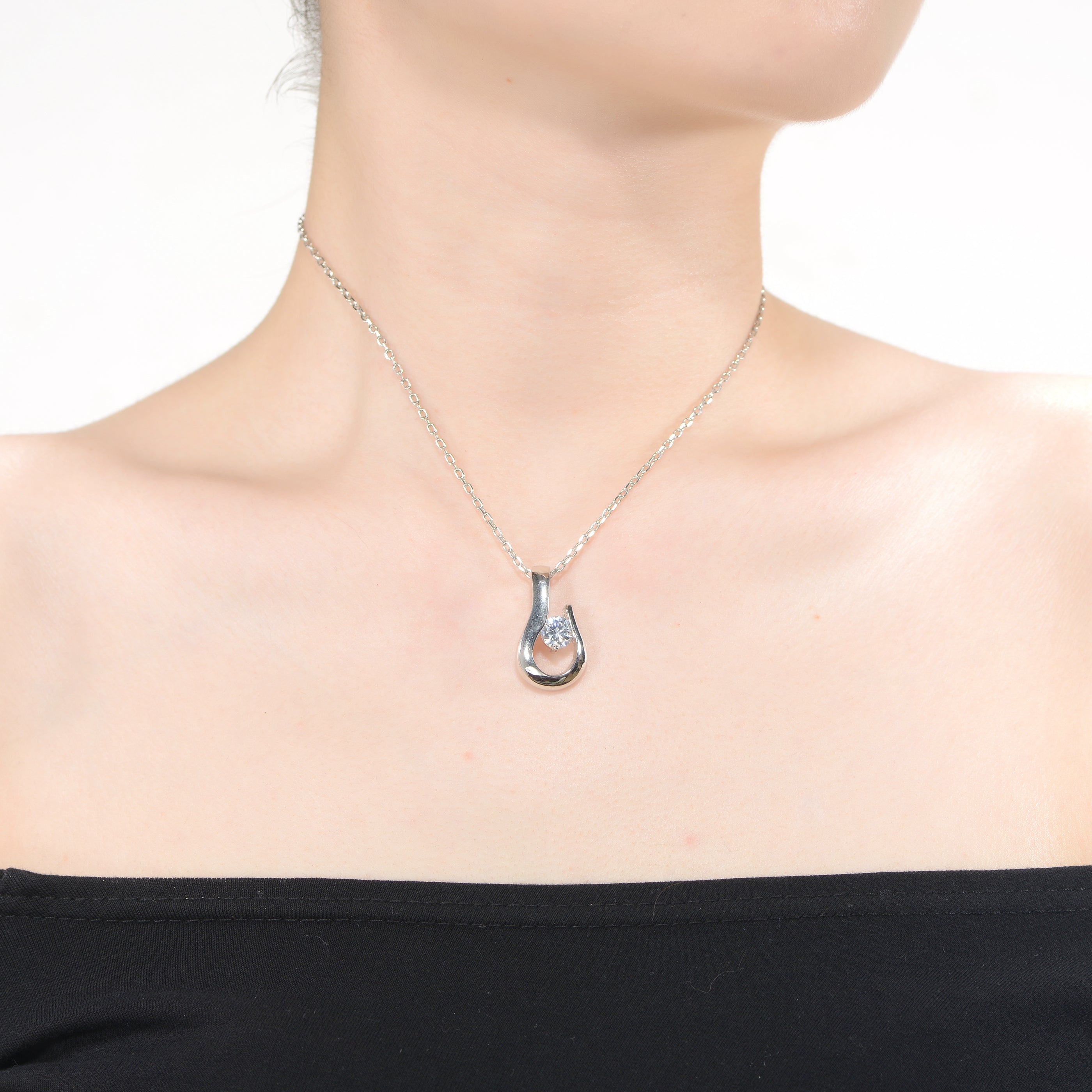 This minimalist pendant necklace features a sleek hook-shaped silhouette that feels both modern and symbolic. Crafted in polished sterling silver, its smooth contours create an effortlessly refined look. Clear cubic zirconia accents add subtle sparkle without overpowering the clean design. The adjustable chain allows versatile styling with different necklines. Designed for everyday elegance, it pairs beautifully with both layered and standalone looks. This necklace is a graceful expression of simplicity and contemporary charm.
