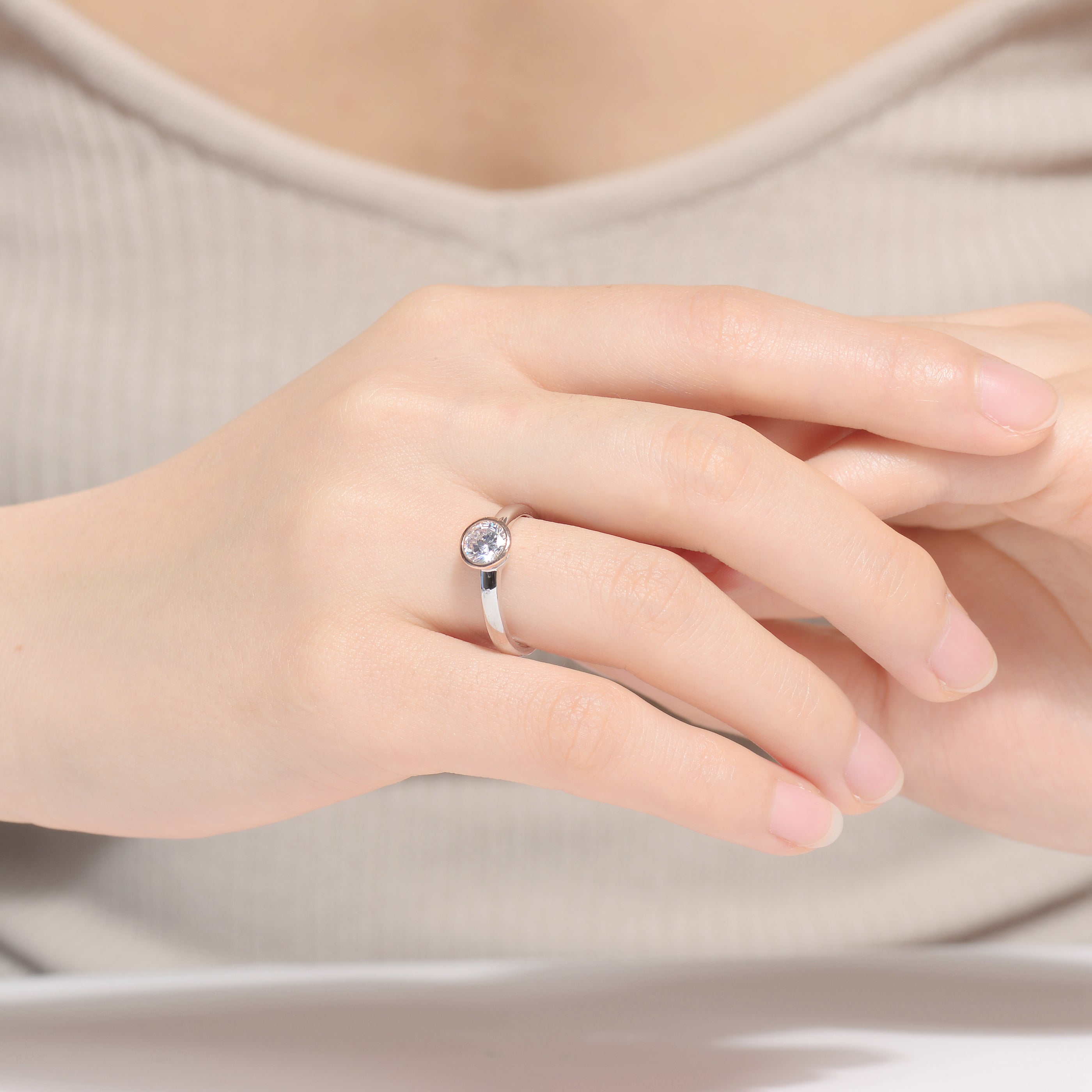 Timeless and understated, this sterling silver ring features a graceful circular design finished with luxurious gold plating. A brilliant round-cut white cubic zirconia sits at the center, adding a refined touch of sparkle that enhances the ring’s classic elegance. Designed to complement both everyday looks and special occasions, this versatile style is available in your choice of Gold or Rose Gold.