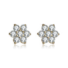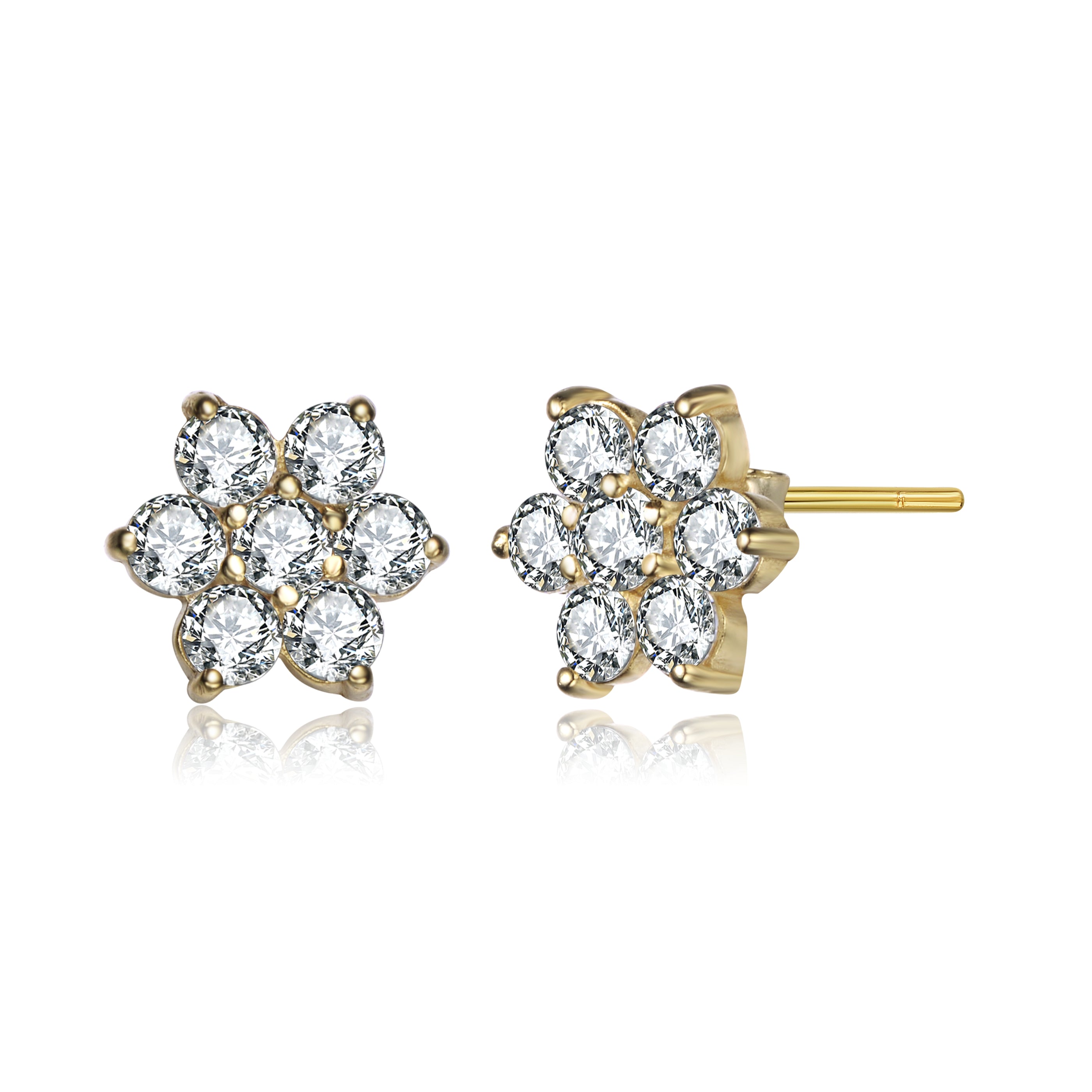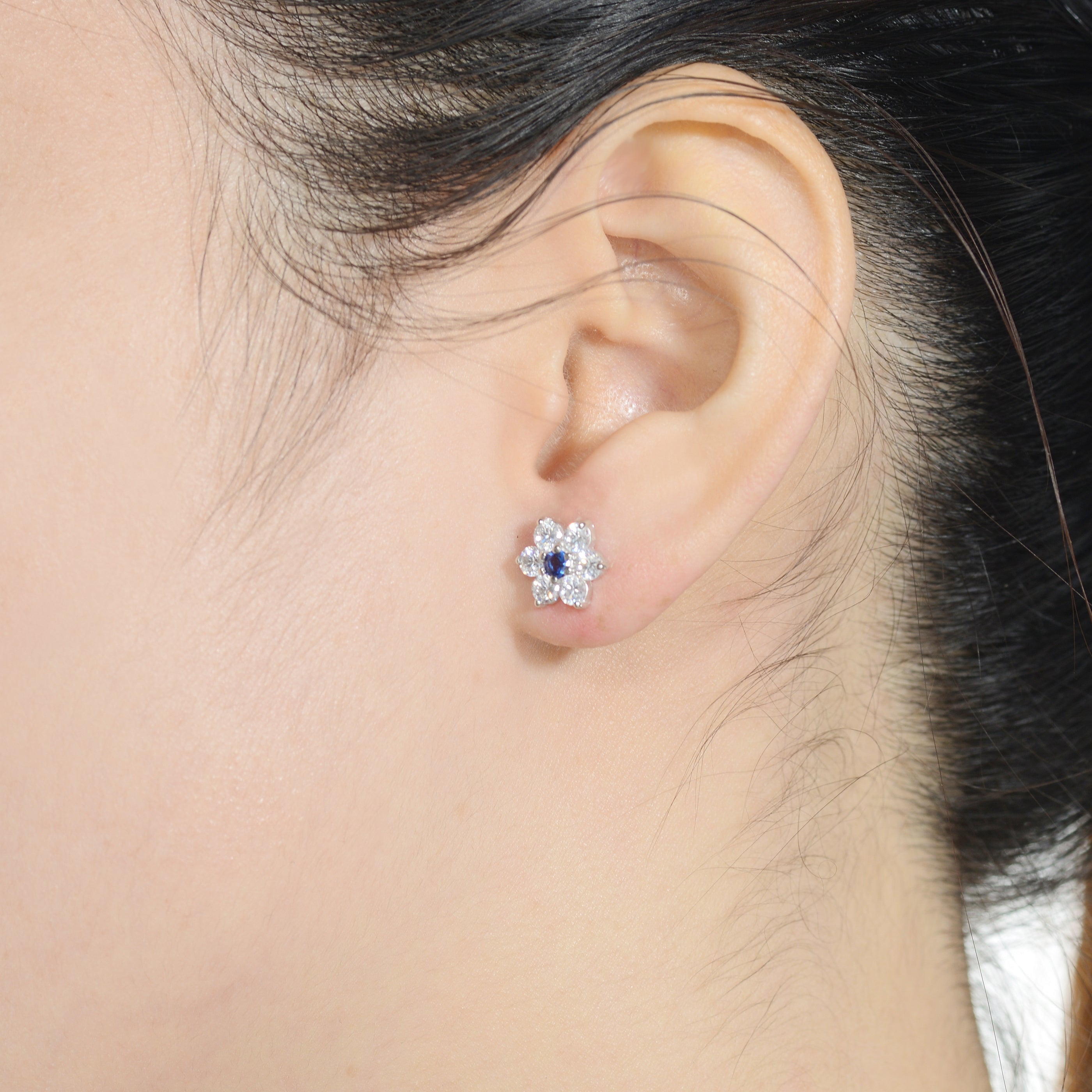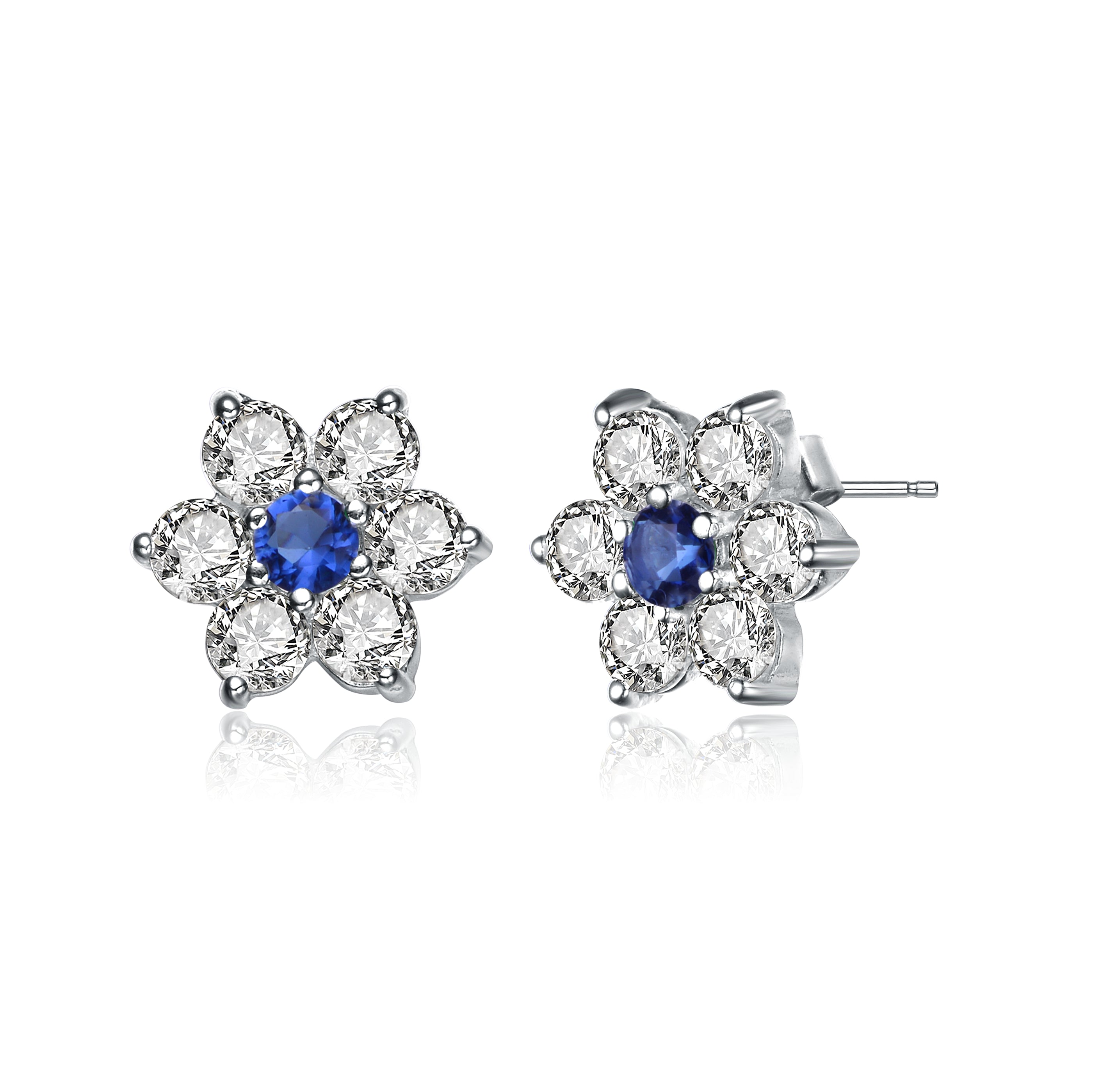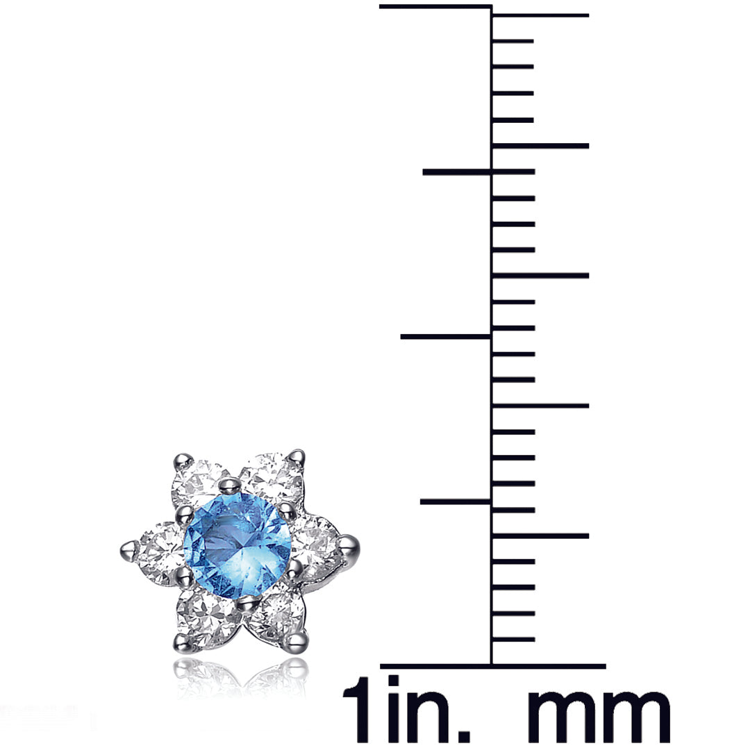 Add a pop of color to your look with these vibrant floral stud earrings. Crafted from .925 sterling silver with a rhodium-plated finish, each pair features a cheerful flower design available in Gold, Yellow, White, Blue, and Sapphire cubic zirconia variations. Petite yet eye-catching, these studs brighten any outfit with effortless charm.