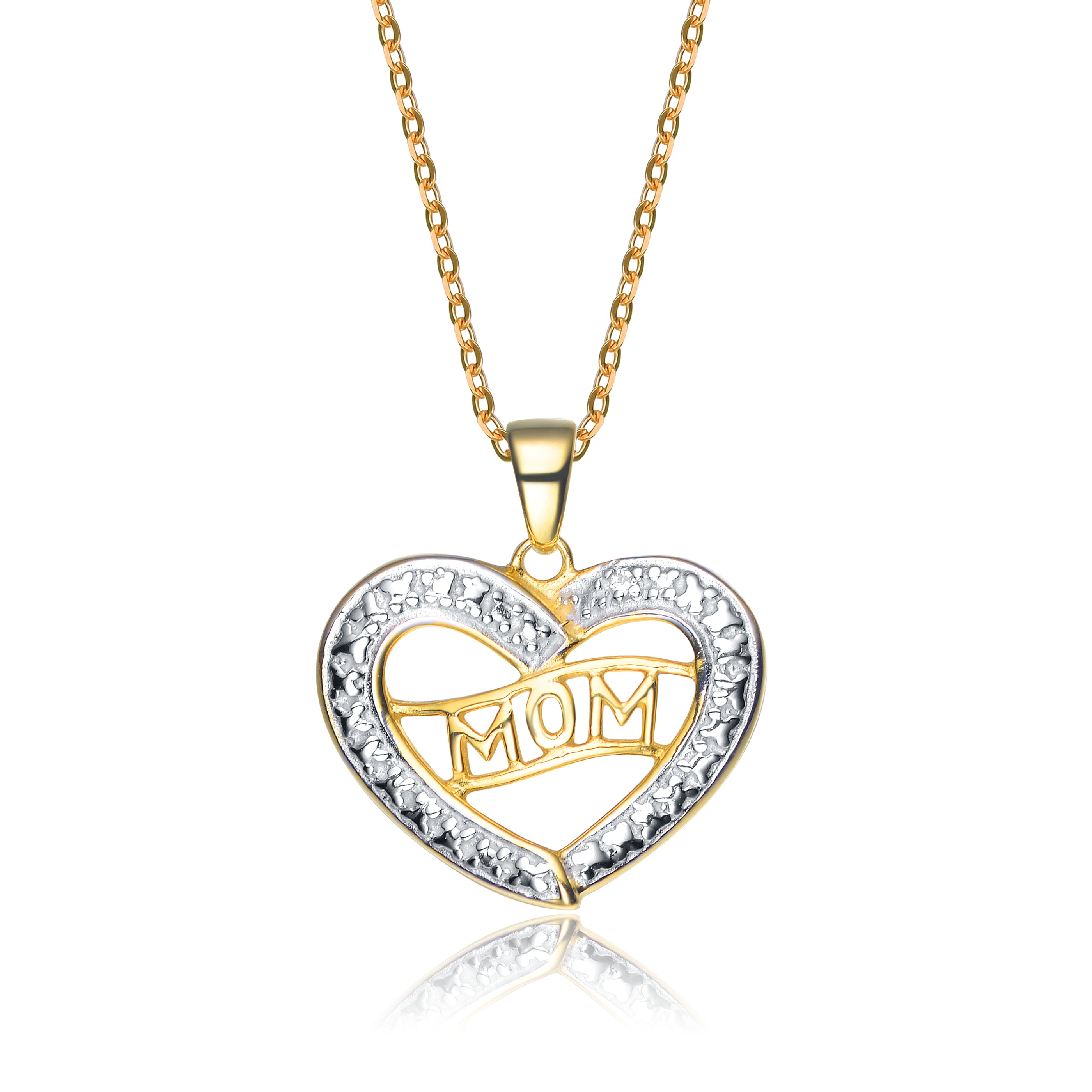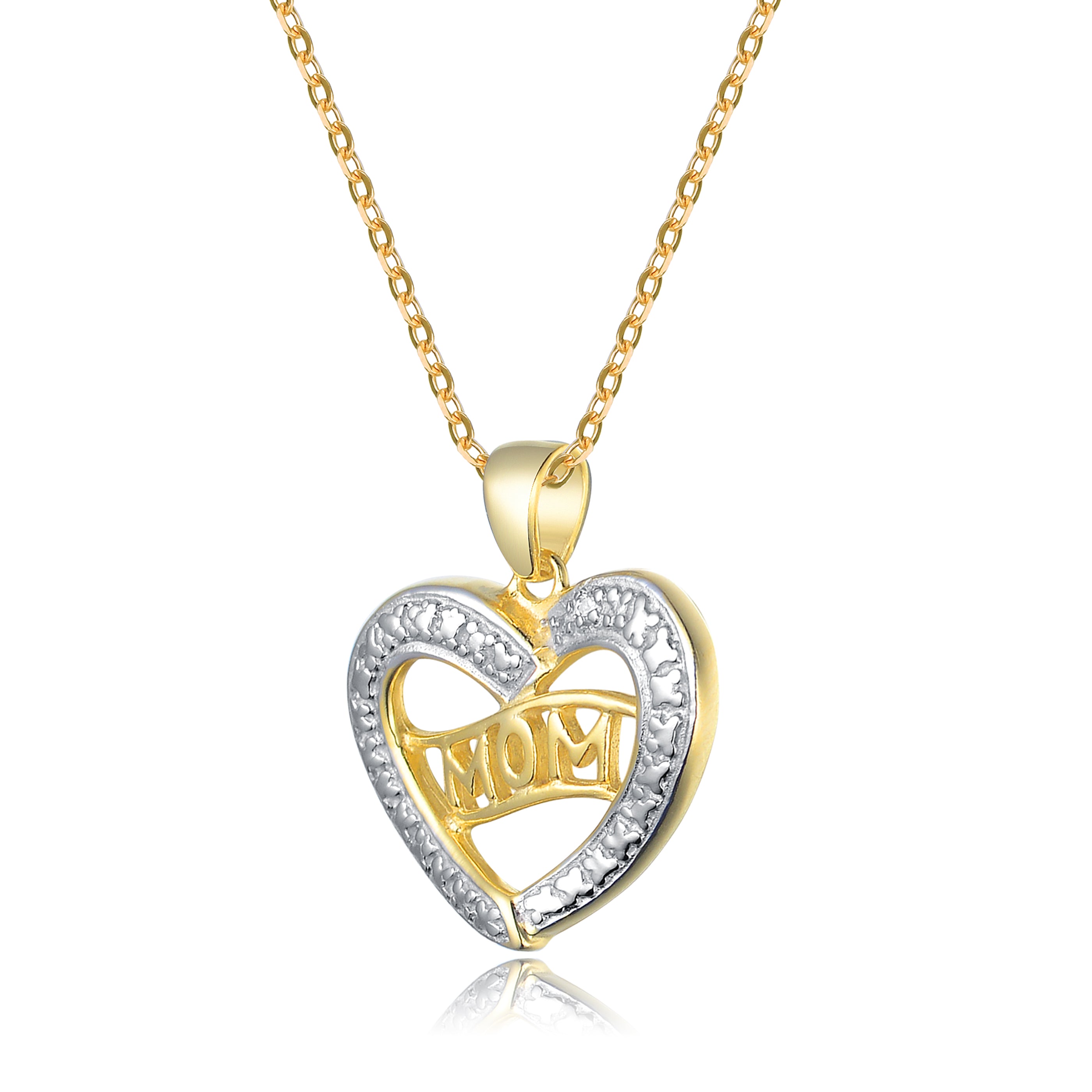 This sentimental heart pendant sparkles with cubic zirconia accents and features a graceful MOM inscription in gold tone, making it a meaningful and elegant gift.