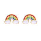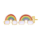 14k Gold Plated Colorful Rainbow Enamel & White Cloud Stud Earrings