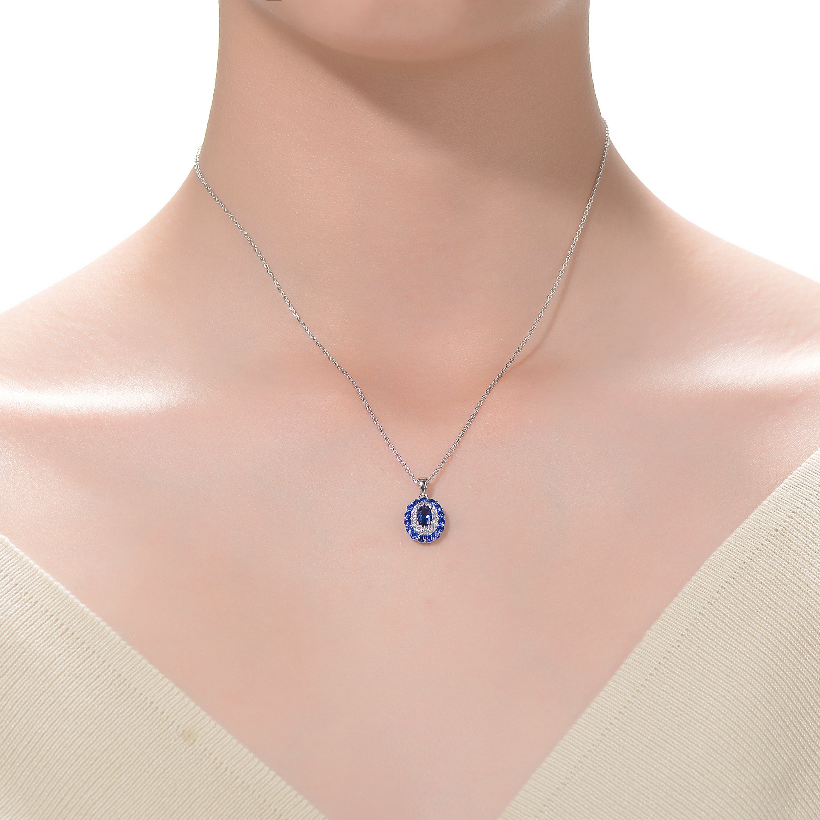 Crafted from .925 sterling silver with a sleek rhodium finish, this oval pendant necklace features a vibrant center stone framed by a delicate trail of clear and colored cubic zirconia accents. The refined silhouette adds a touch of brilliance while remaining effortlessly wearable. Secured with a spring ring closure, this necklace is a timeless piece that transitions seamlessly from day to evening and makes a thoughtful gift.