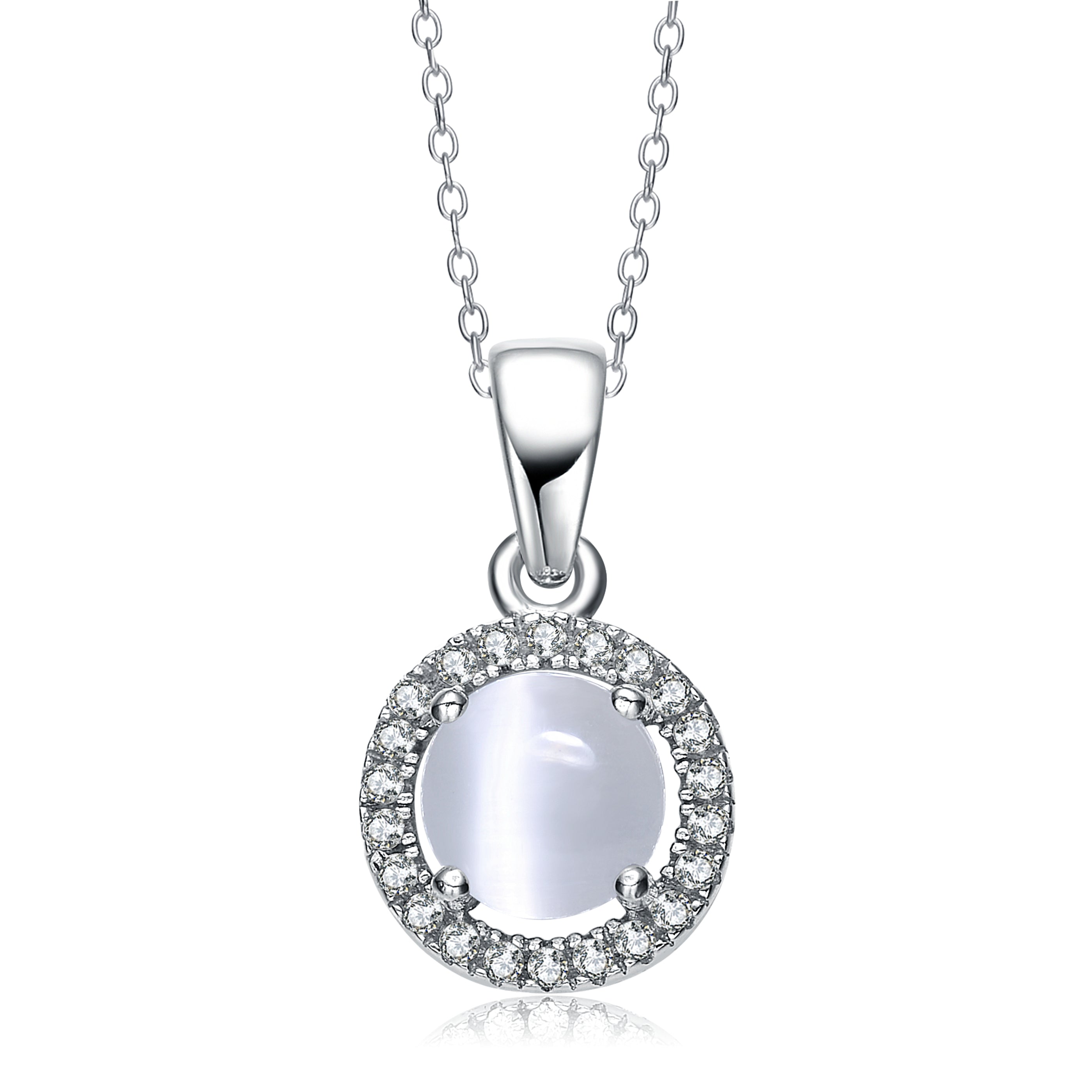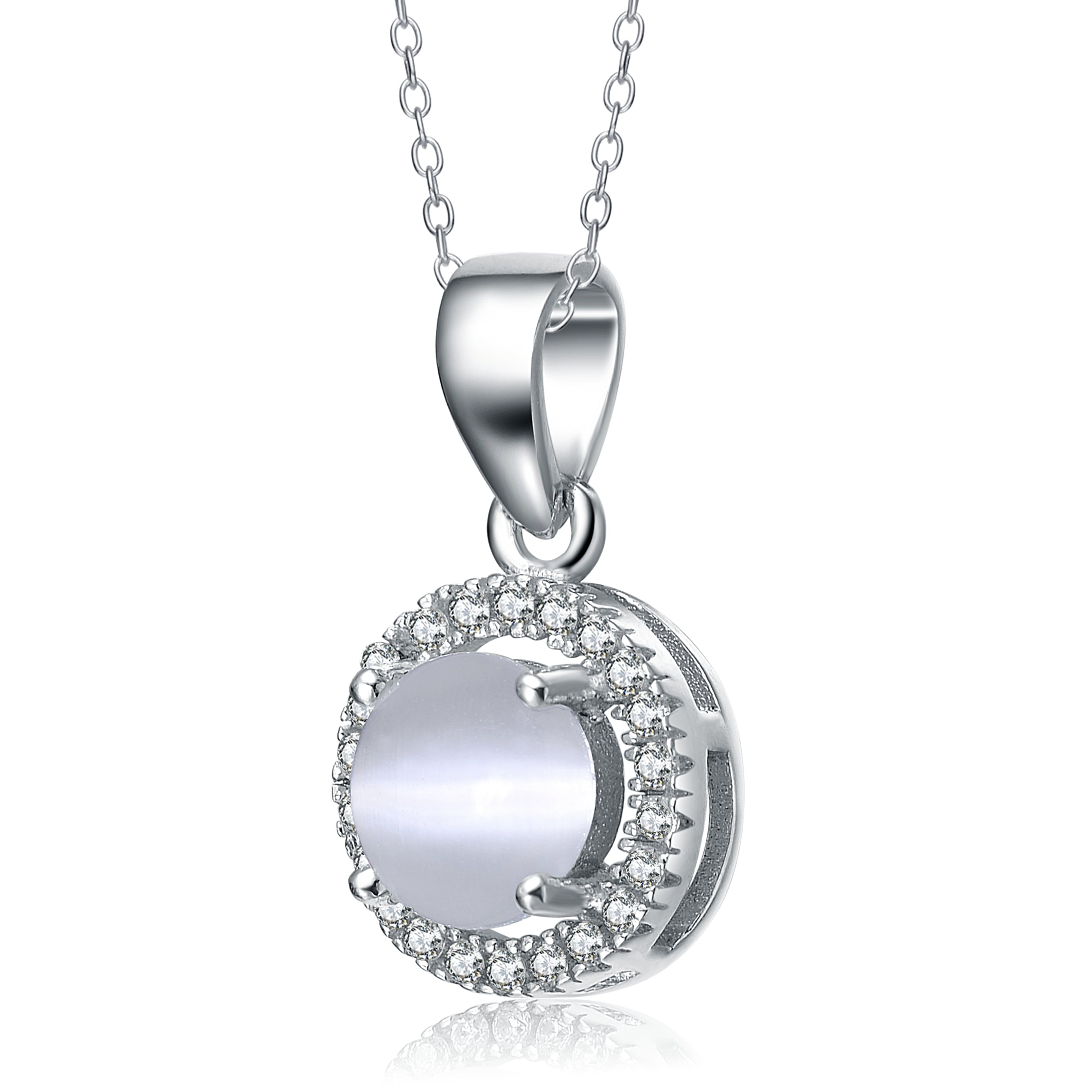 This classy pendant,uses Sterling silver to its advantage. A solid circle of sterling steel rests in the centre of the design, surrounded by an outline of white cubic zirconia set in sterling silver and is affordable.
