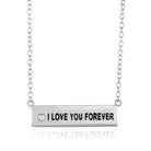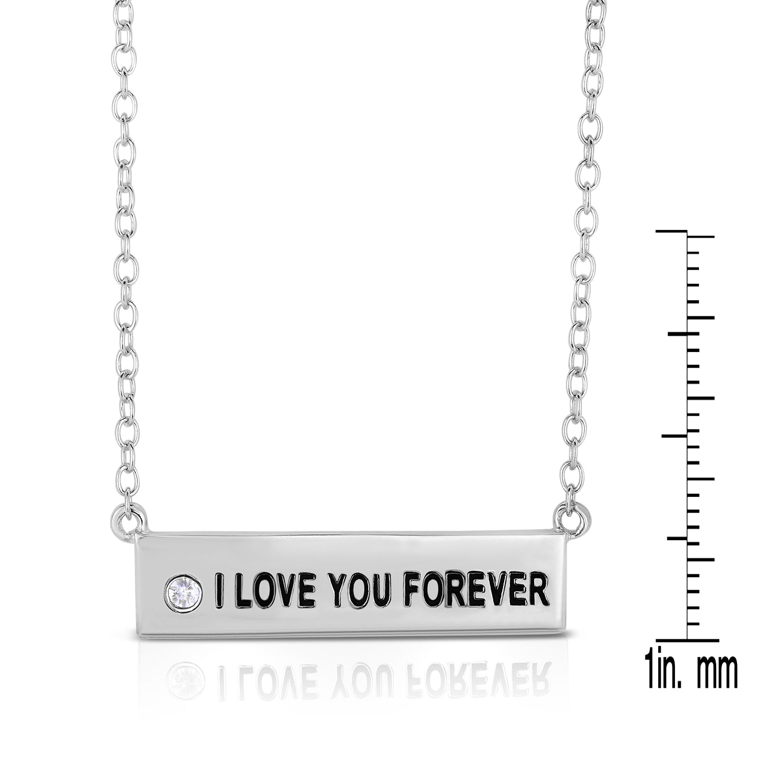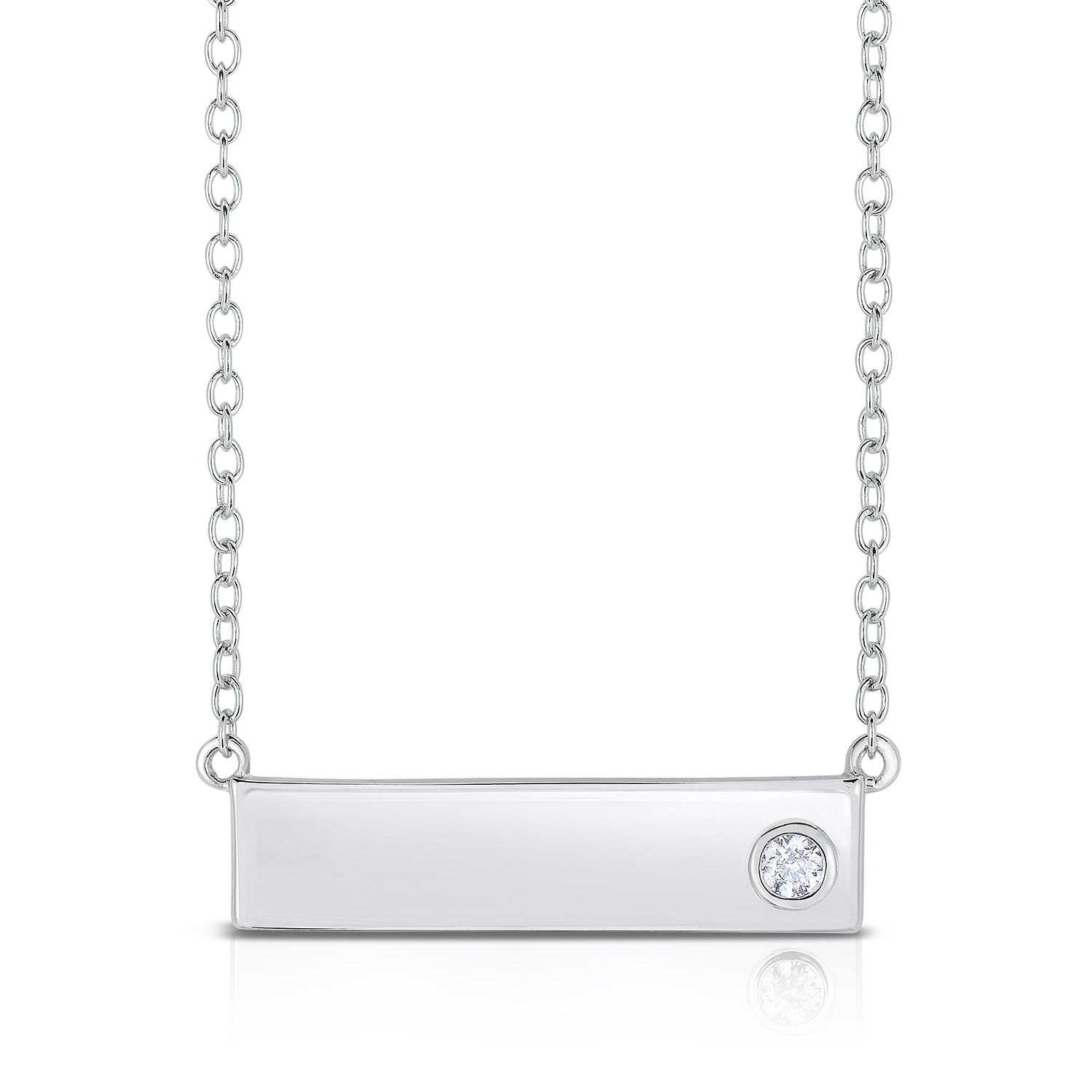 Tell her exactly what you mean with this sterling silver necklace with a single cubic zirconia gemstone on the nameplate. There is no mixed messages with a sterling silver nameplate bound with delicate silver chains on both upper corners; the single stone tells her that you realy mean what you said.