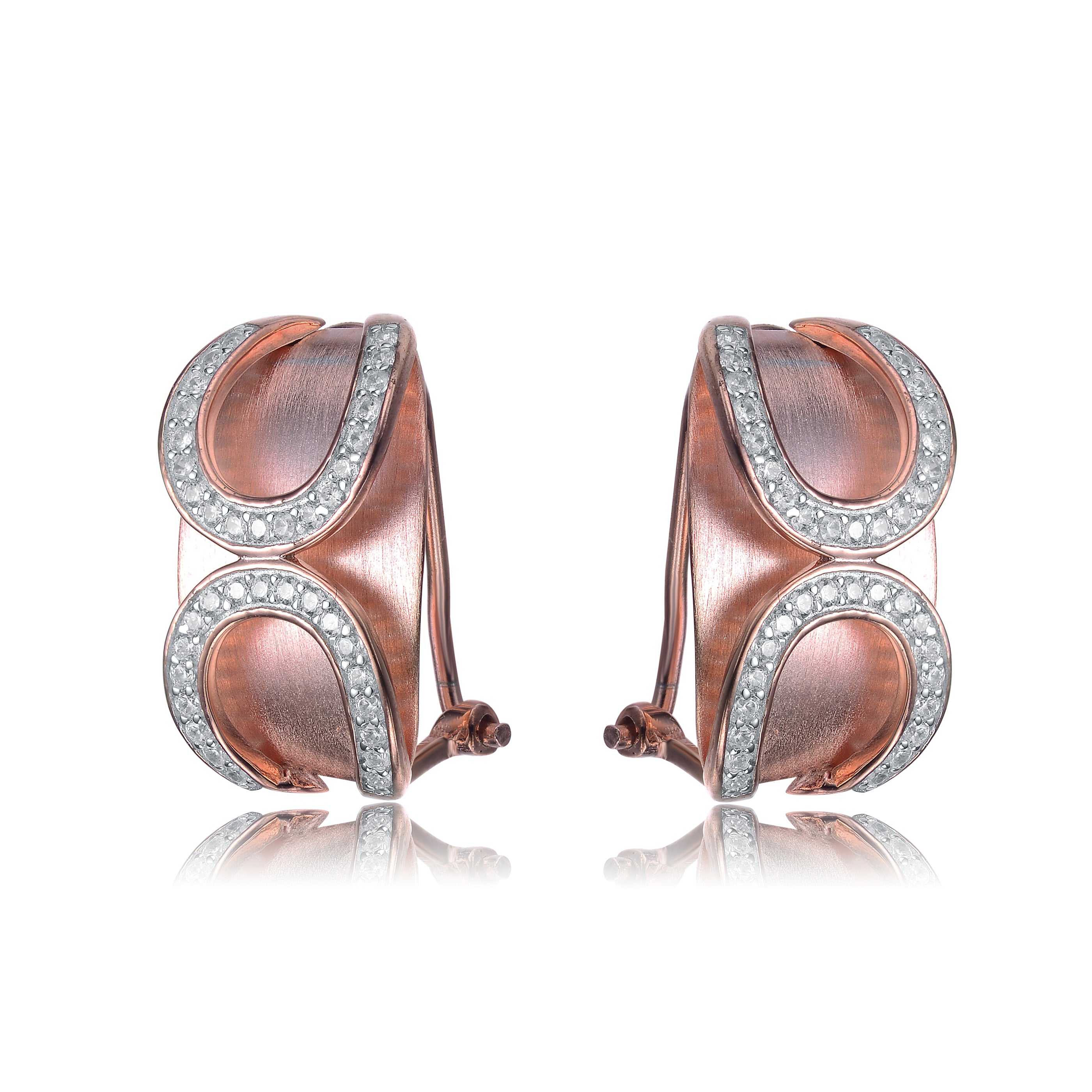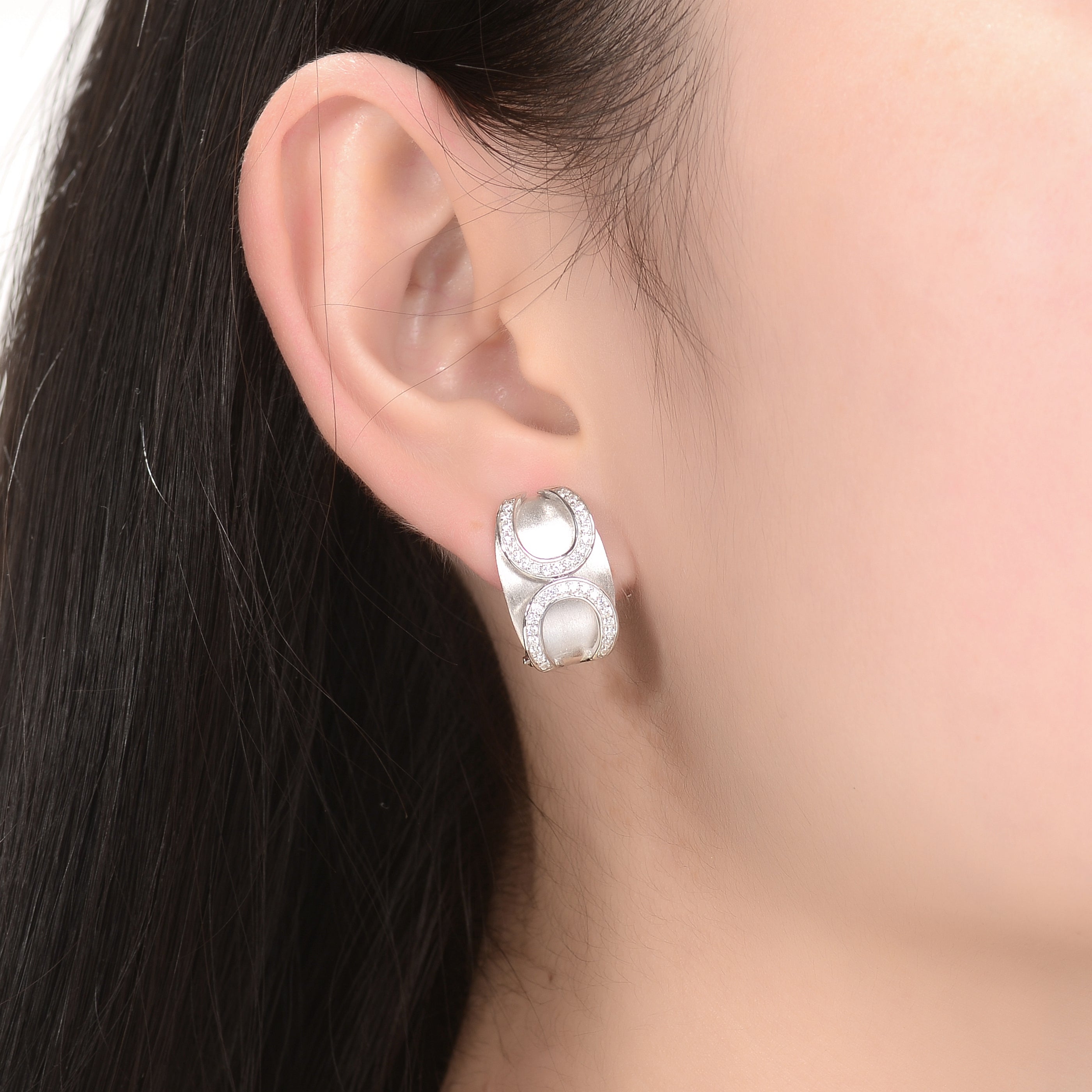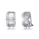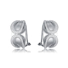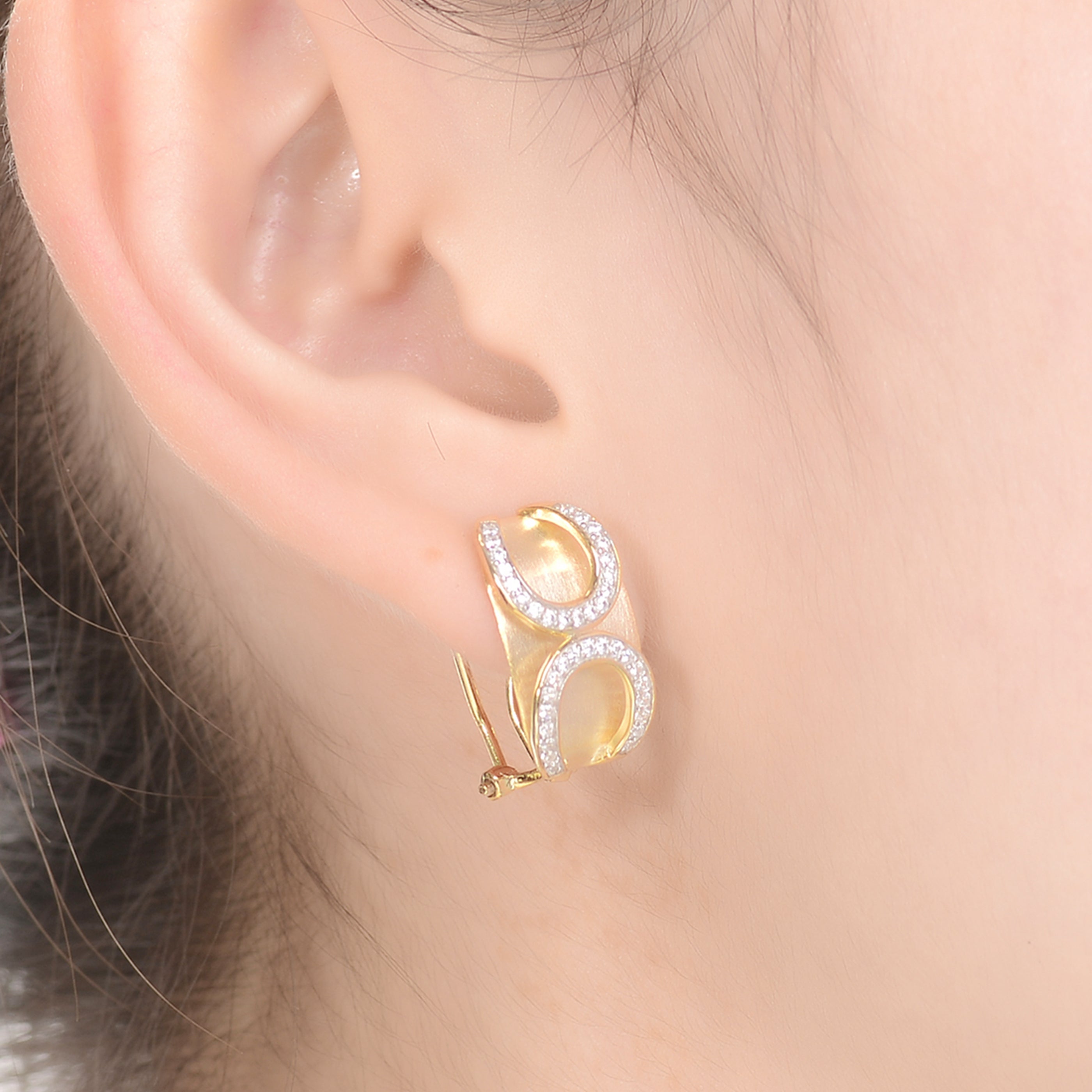 These unique earrings feature an elegant infinity-inspired silhouette, beautifully paved with clear white cubic zirconia for a radiant sparkle. Designed in .925 sterling silver, they are available in Rose Gold, Gold, and Silver finishes. Each pair secures comfortably with a French clasp, offering a refined touch to any look.