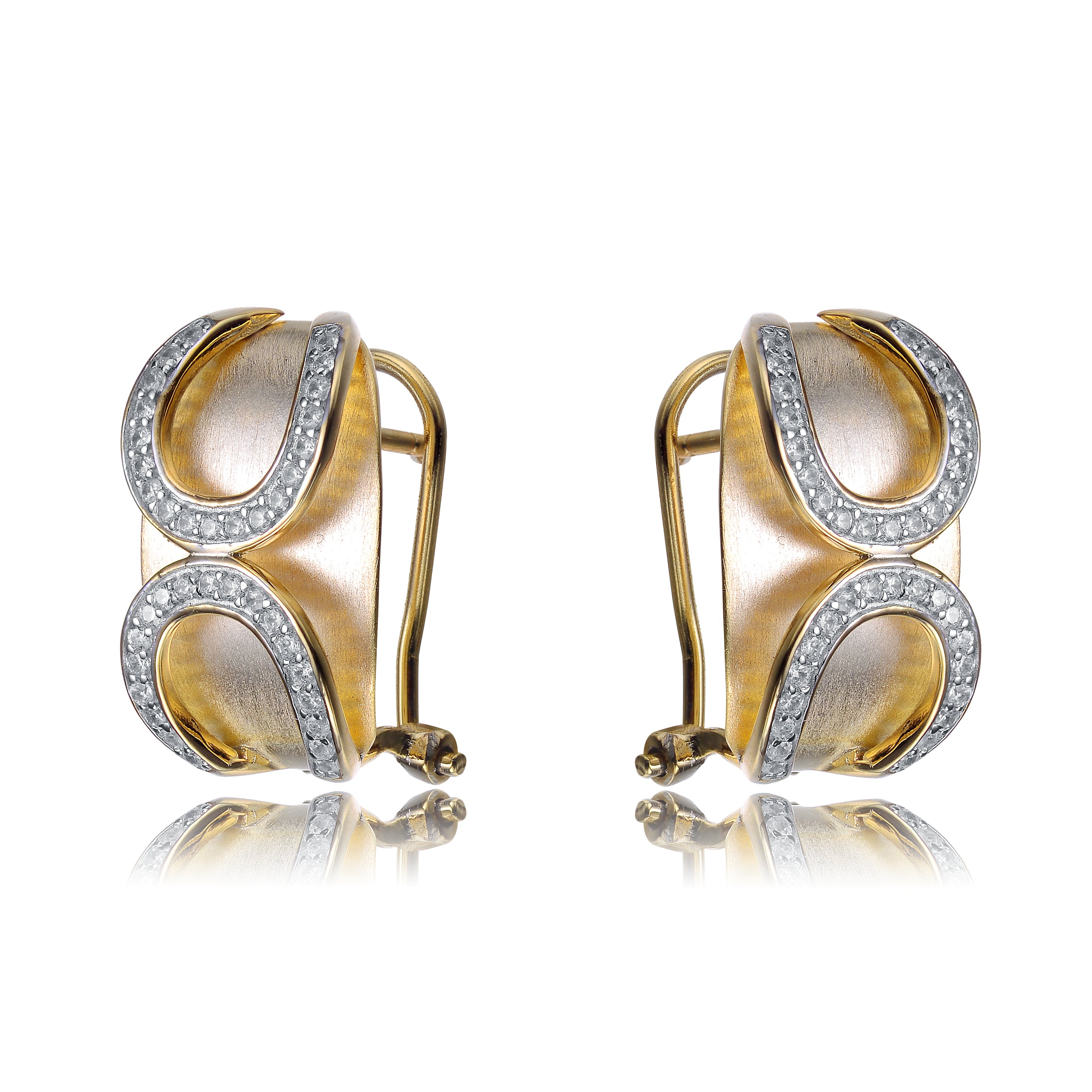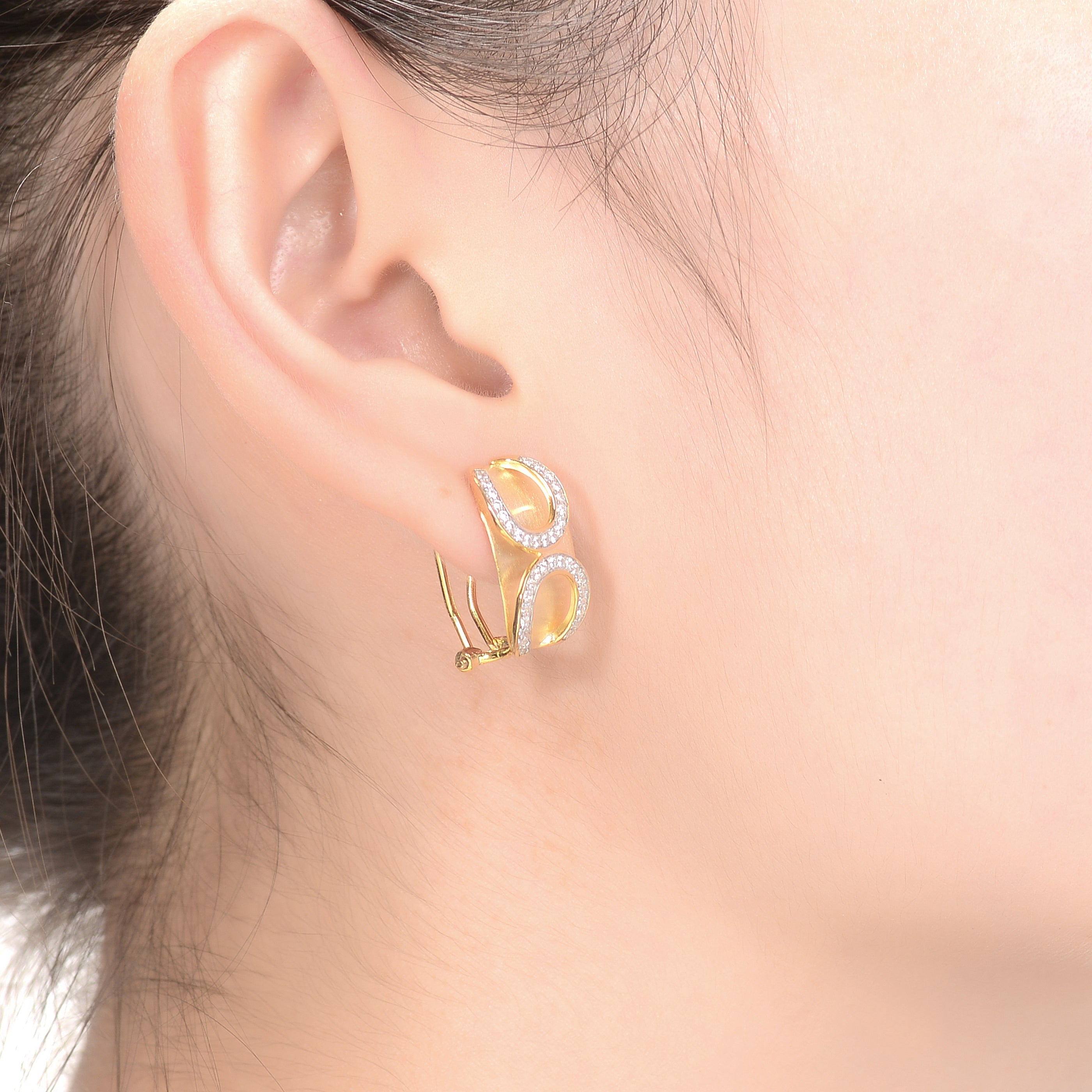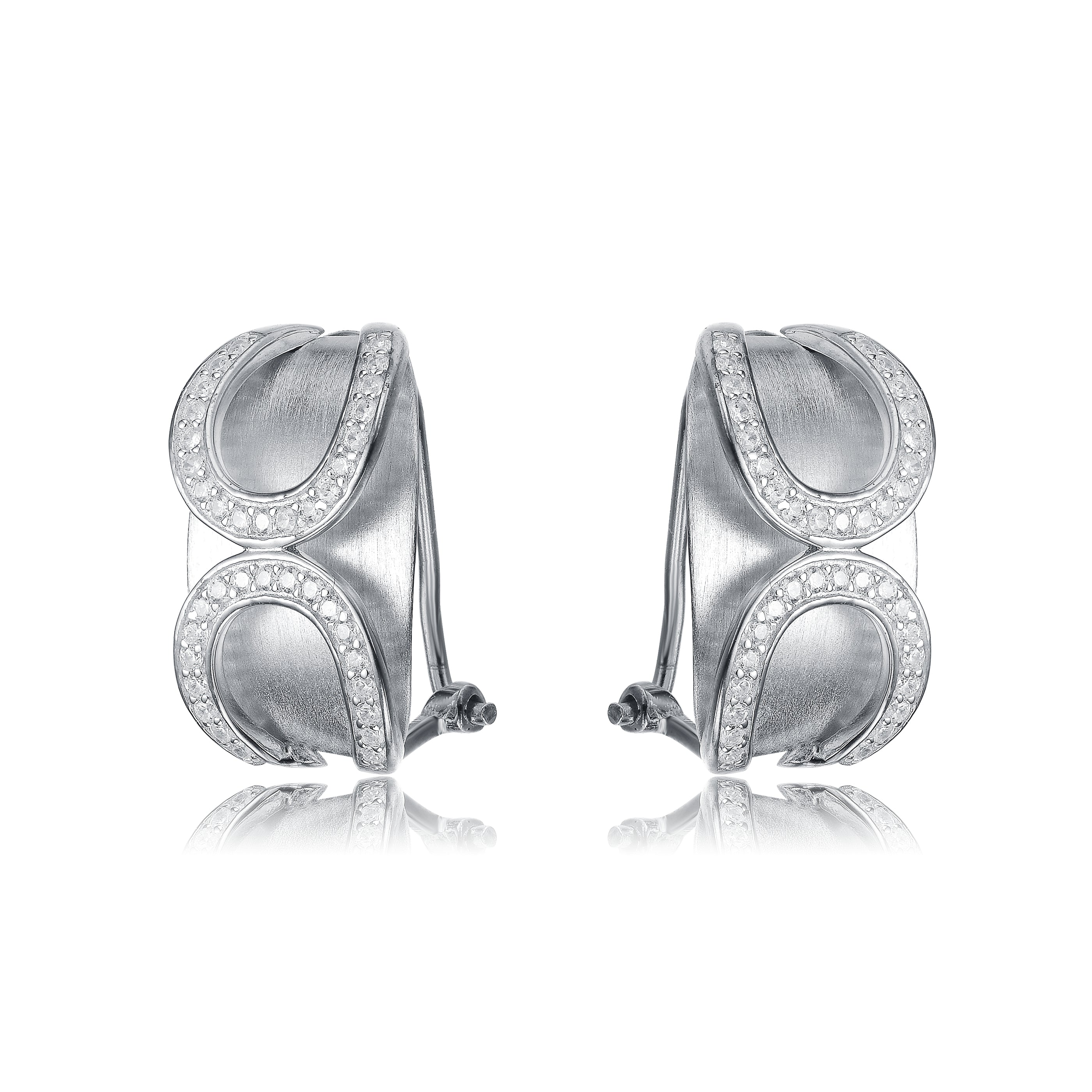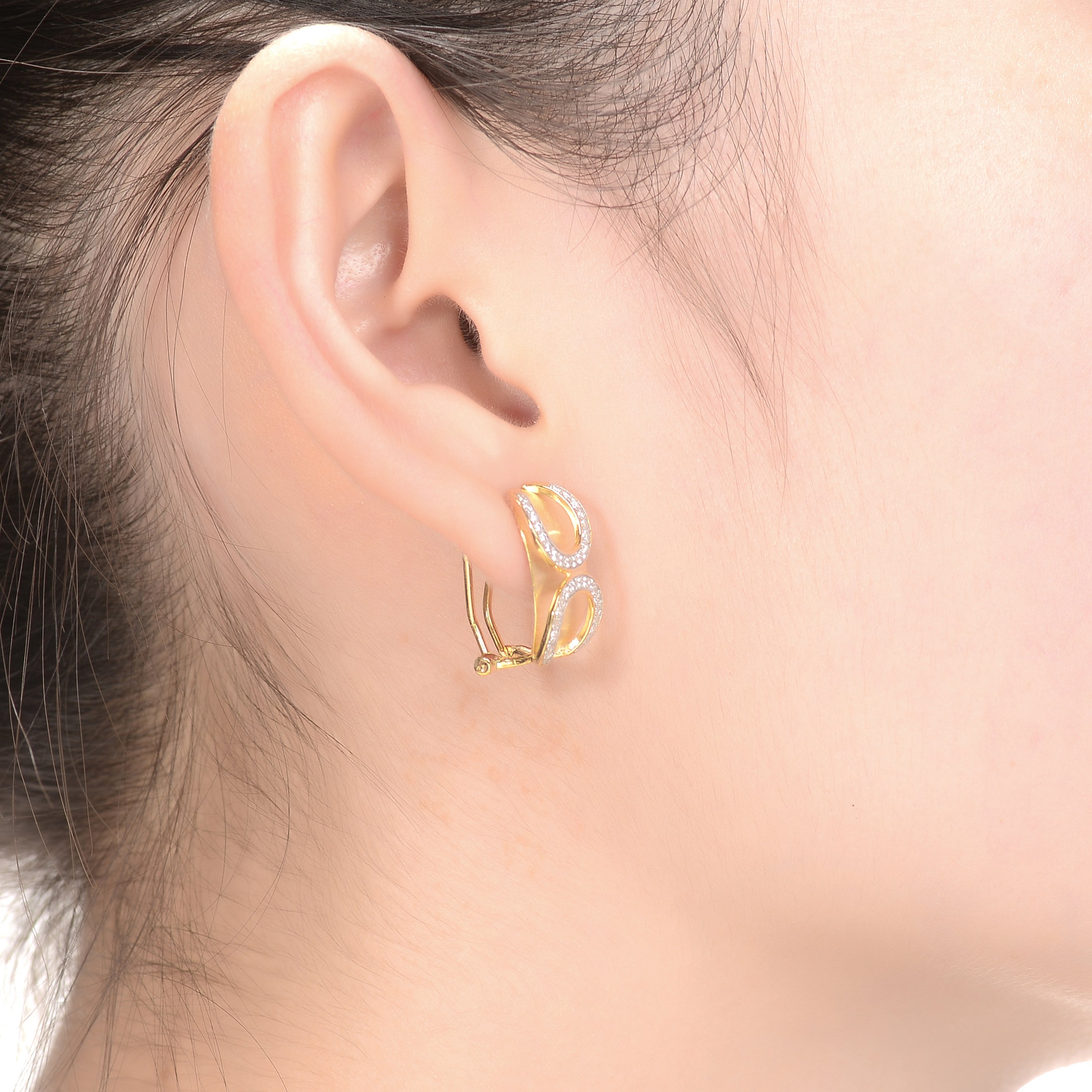 These unique earrings feature an elegant infinity-inspired silhouette, beautifully paved with clear white cubic zirconia for a radiant sparkle. Designed in .925 sterling silver, they are available in Rose Gold, Gold, and Silver finishes. Each pair secures comfortably with a French clasp, offering a refined touch to any look.