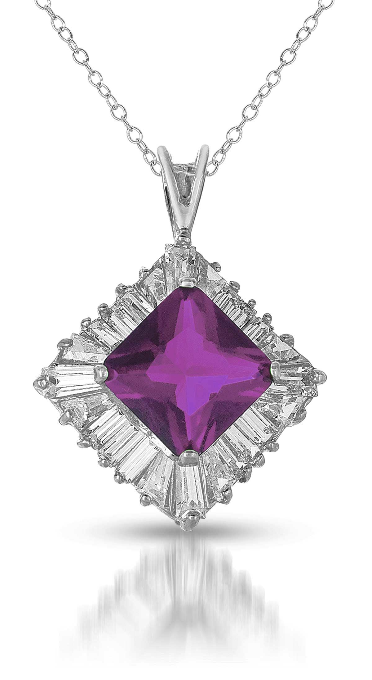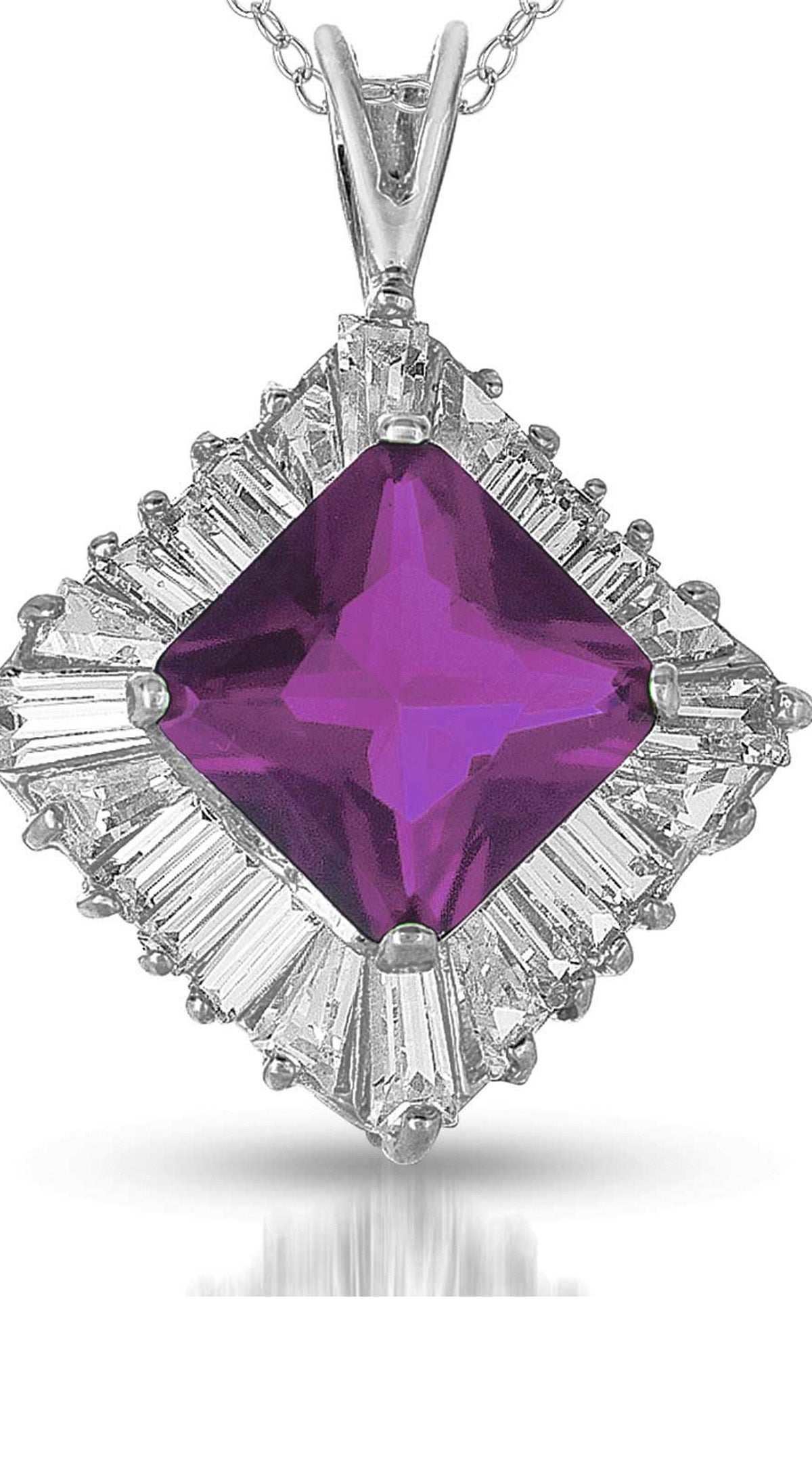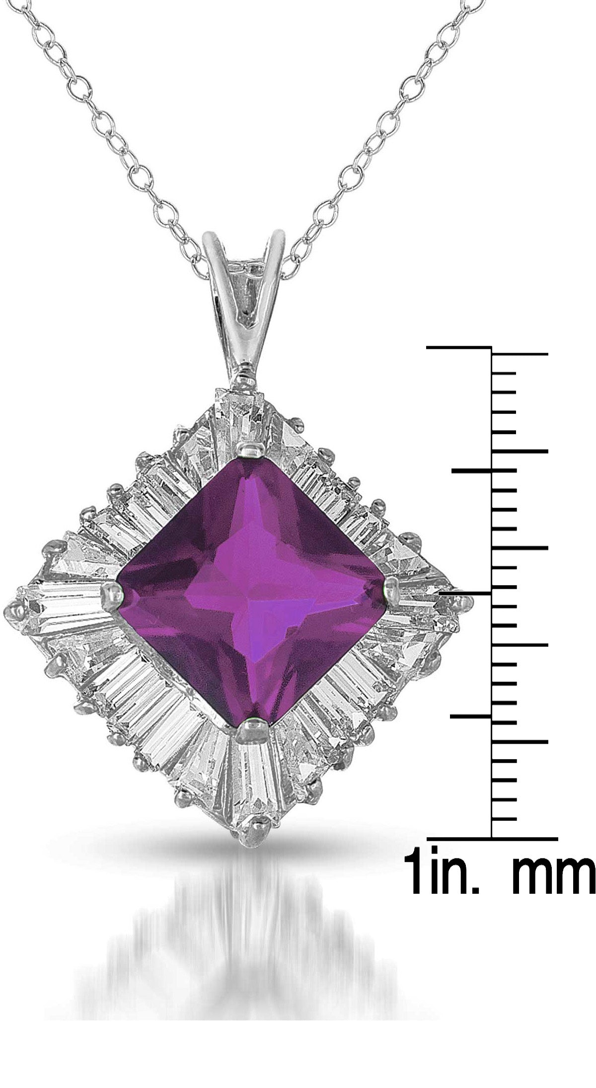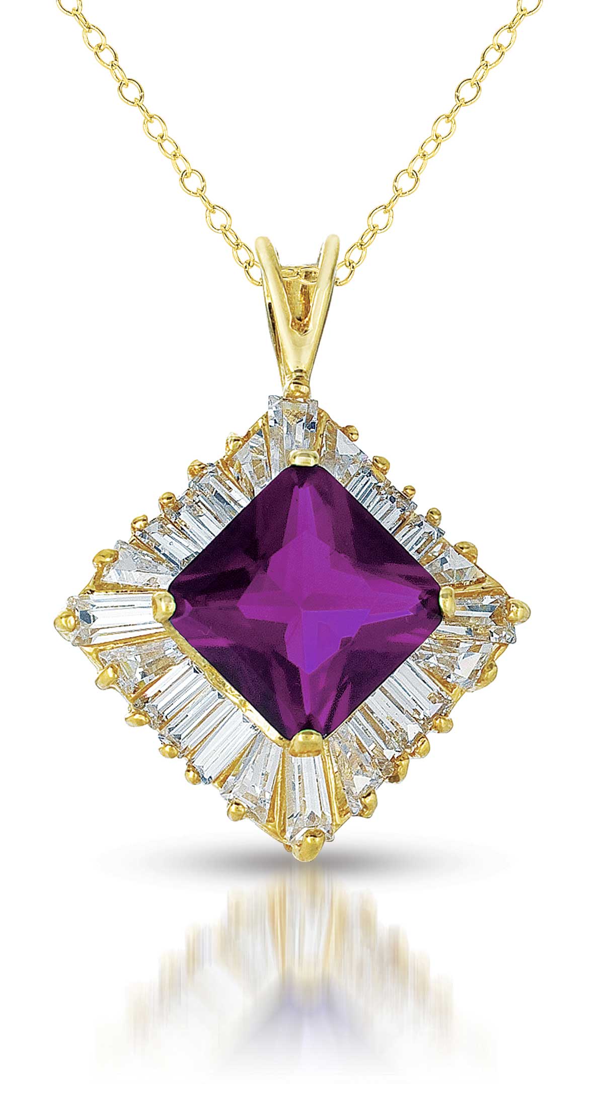 shaped purple cubic zirconia accents in the middle of the pendant with layer of rectangular clear gems. This pendant necklace is made from .925 sterling silver plated with yellow gold and secured with spring ring.