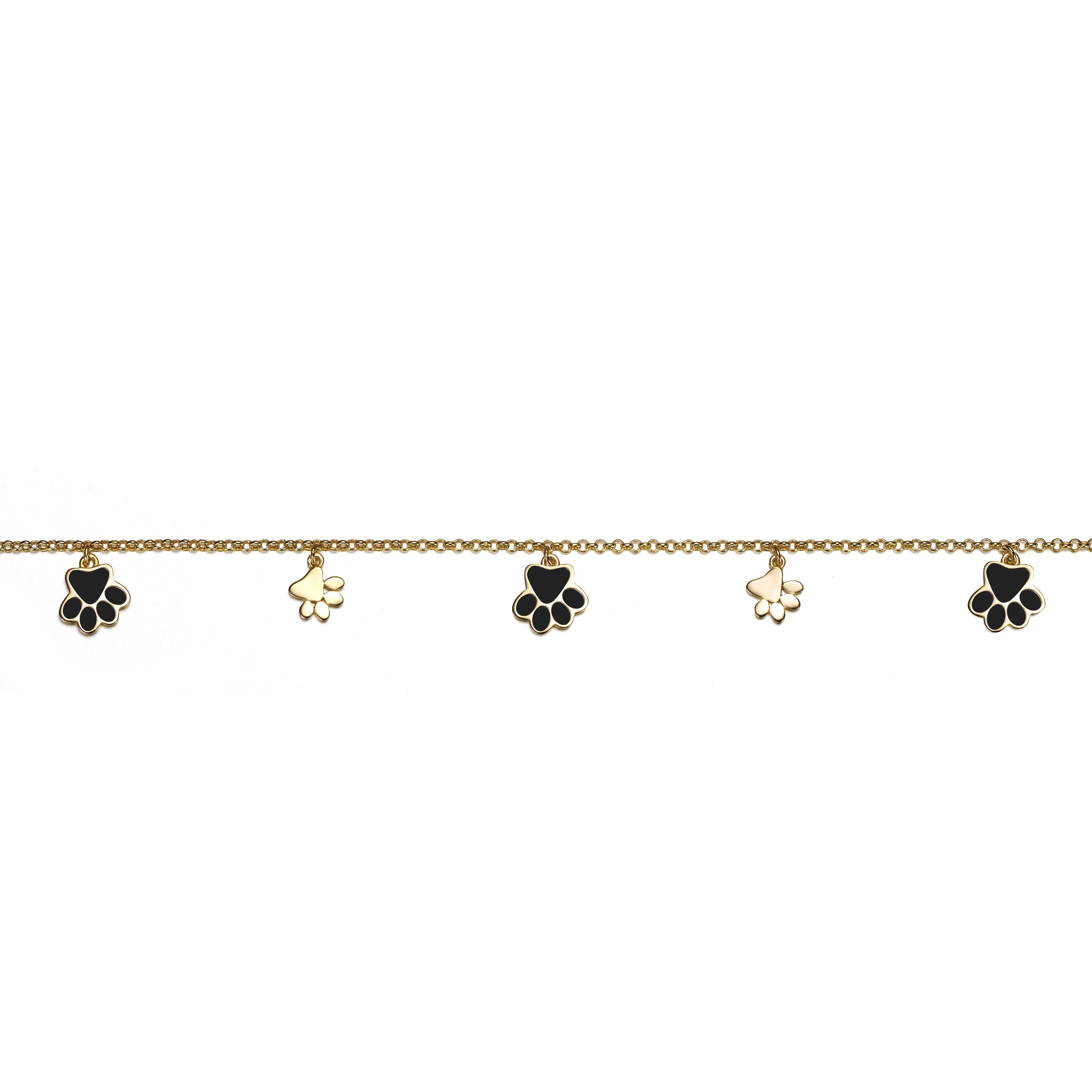 14k Gold Plated Enamel Puppy Paw Dangle Charm Anklet, Adjustable Length