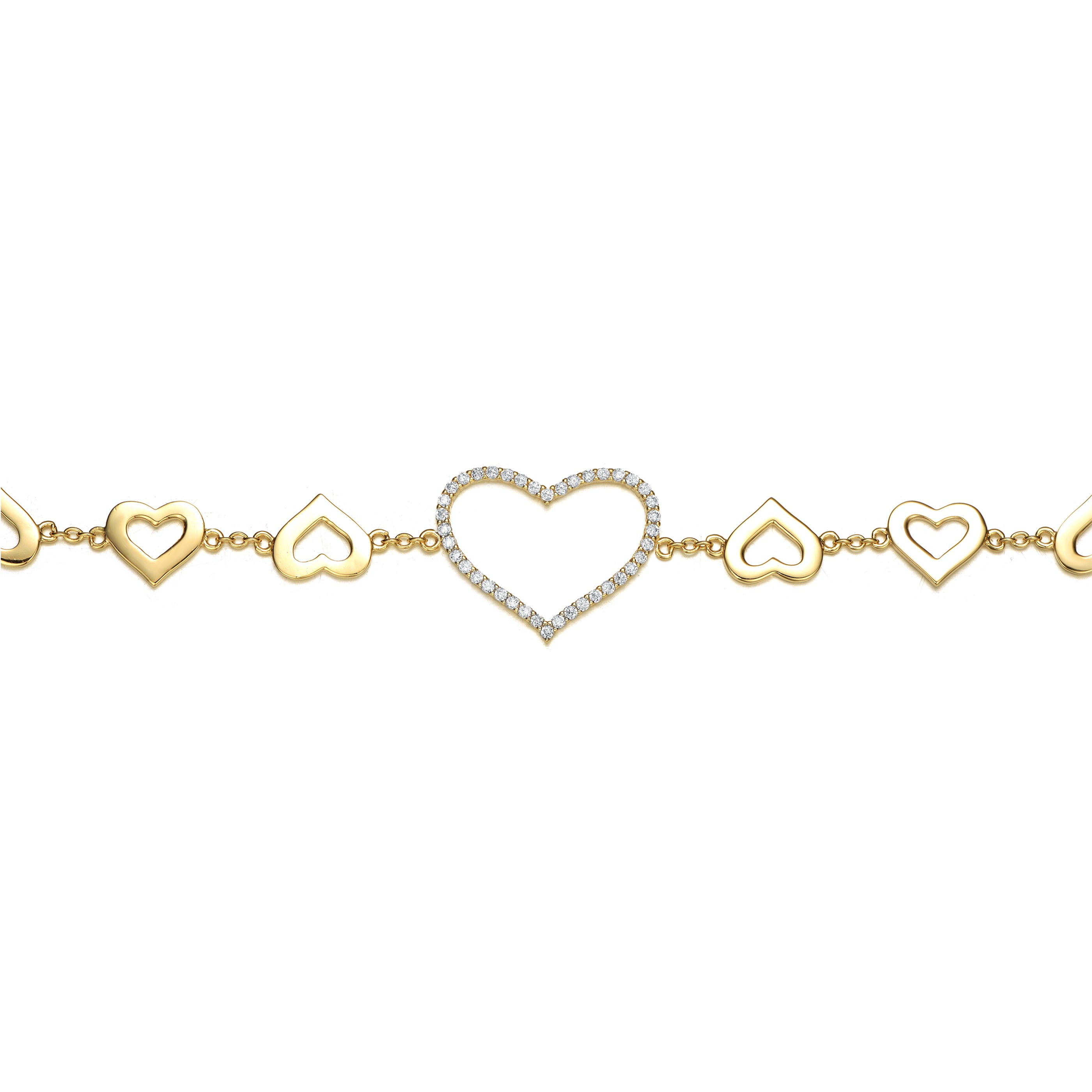 14k Yellow Gold Plated with Cubic Zirconia Heart Halo Charm Bracelet in Sterling Silver