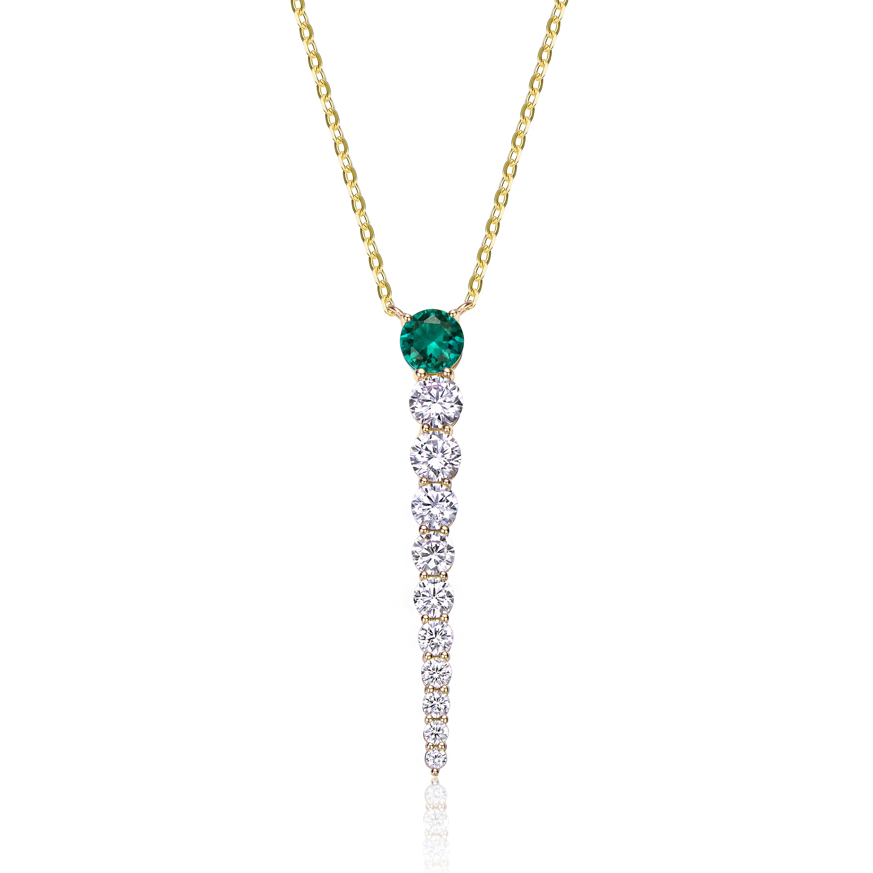 14k Yellow Gold Plated With Cubic Zirconia Icicle Journey Pendant Layering Necklace in Sterling Silver