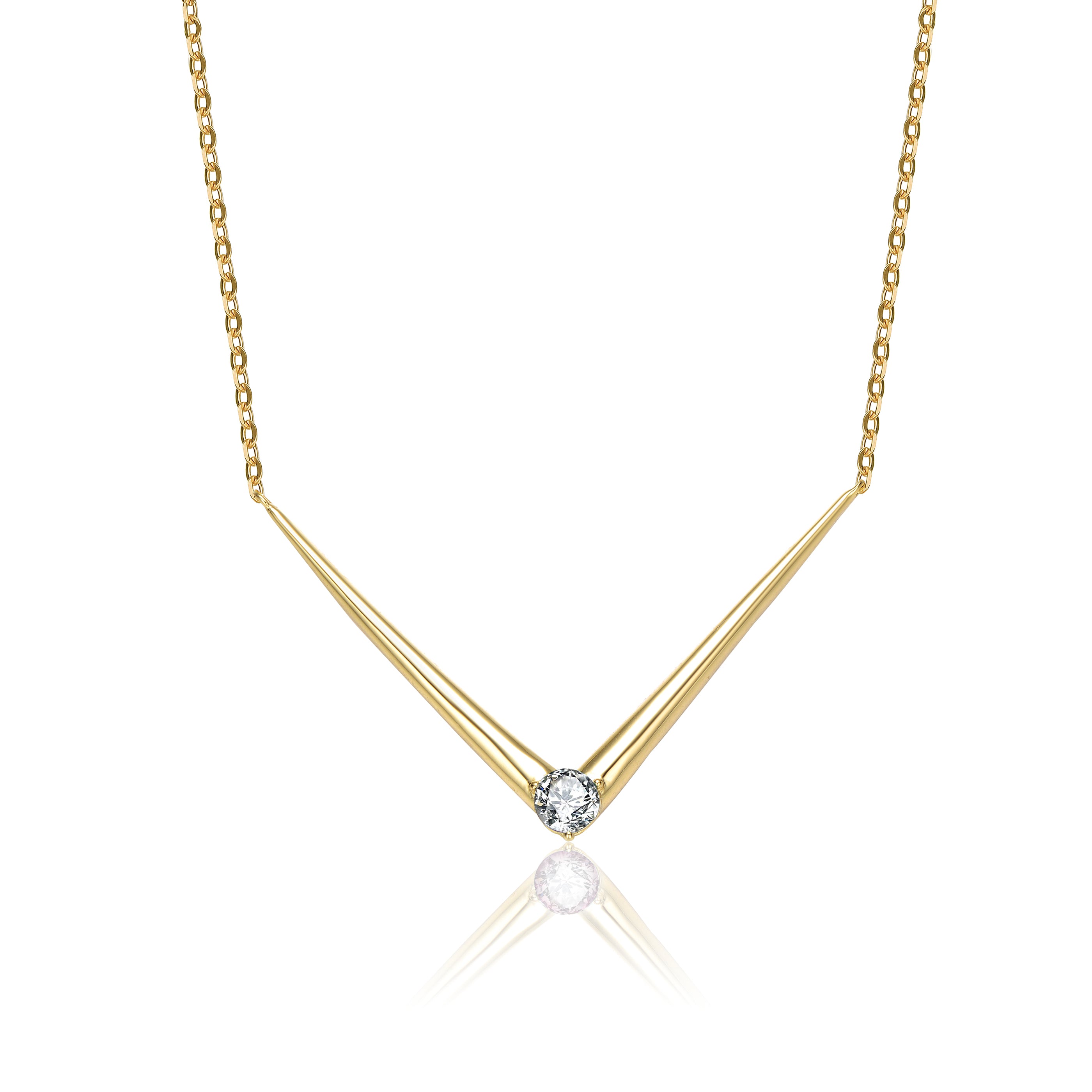 14k Yellow Gold Plated with Cubic Zirconia Solar Chevron Necklace in Sterling Silver