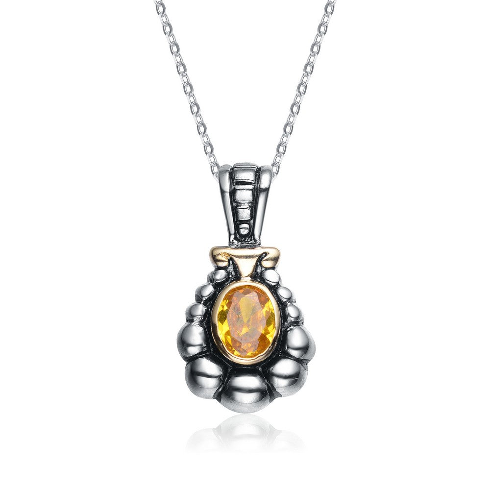 .925 Sterling Silver Yellow Cubic Zirconia Dark Pendant