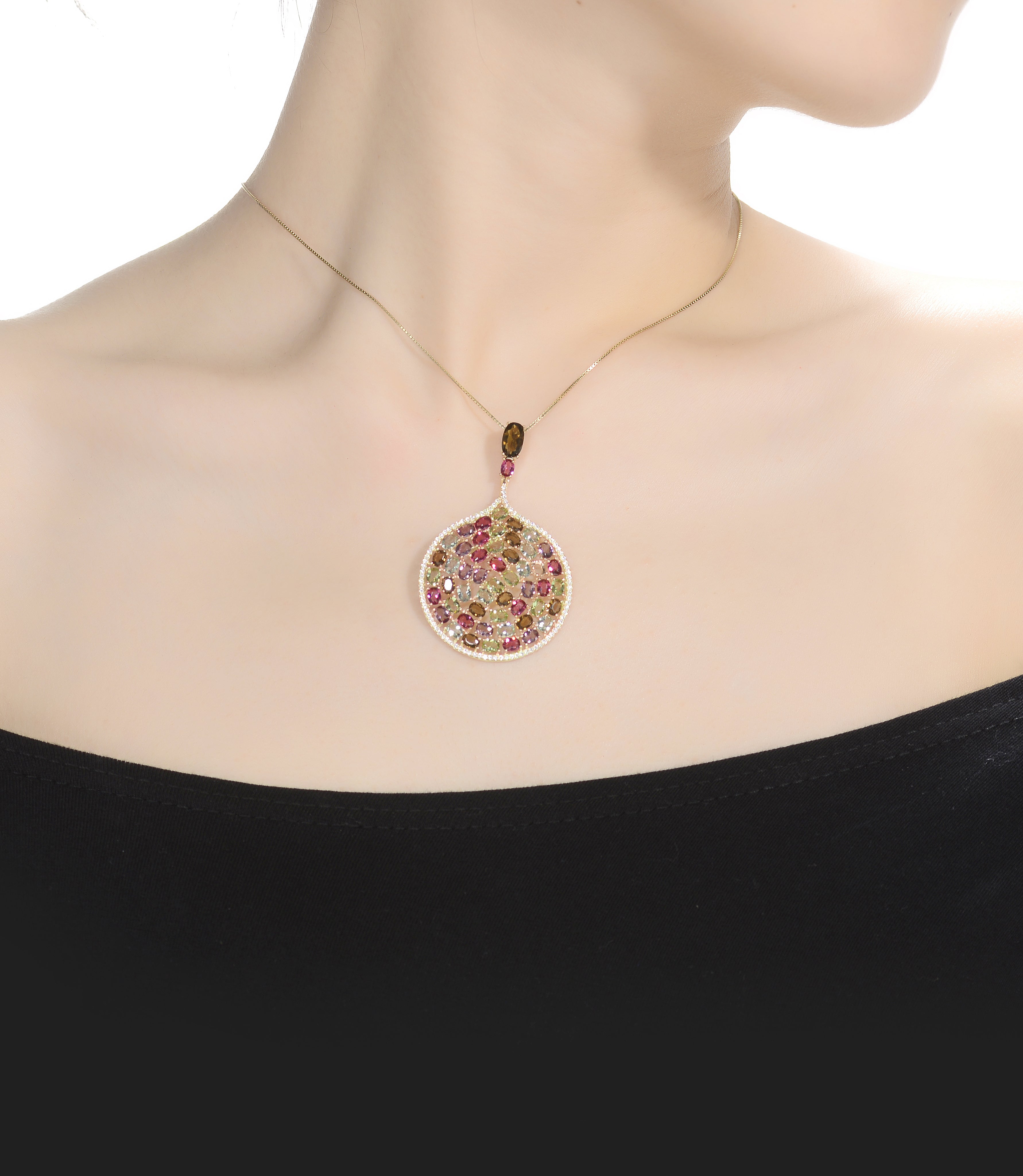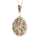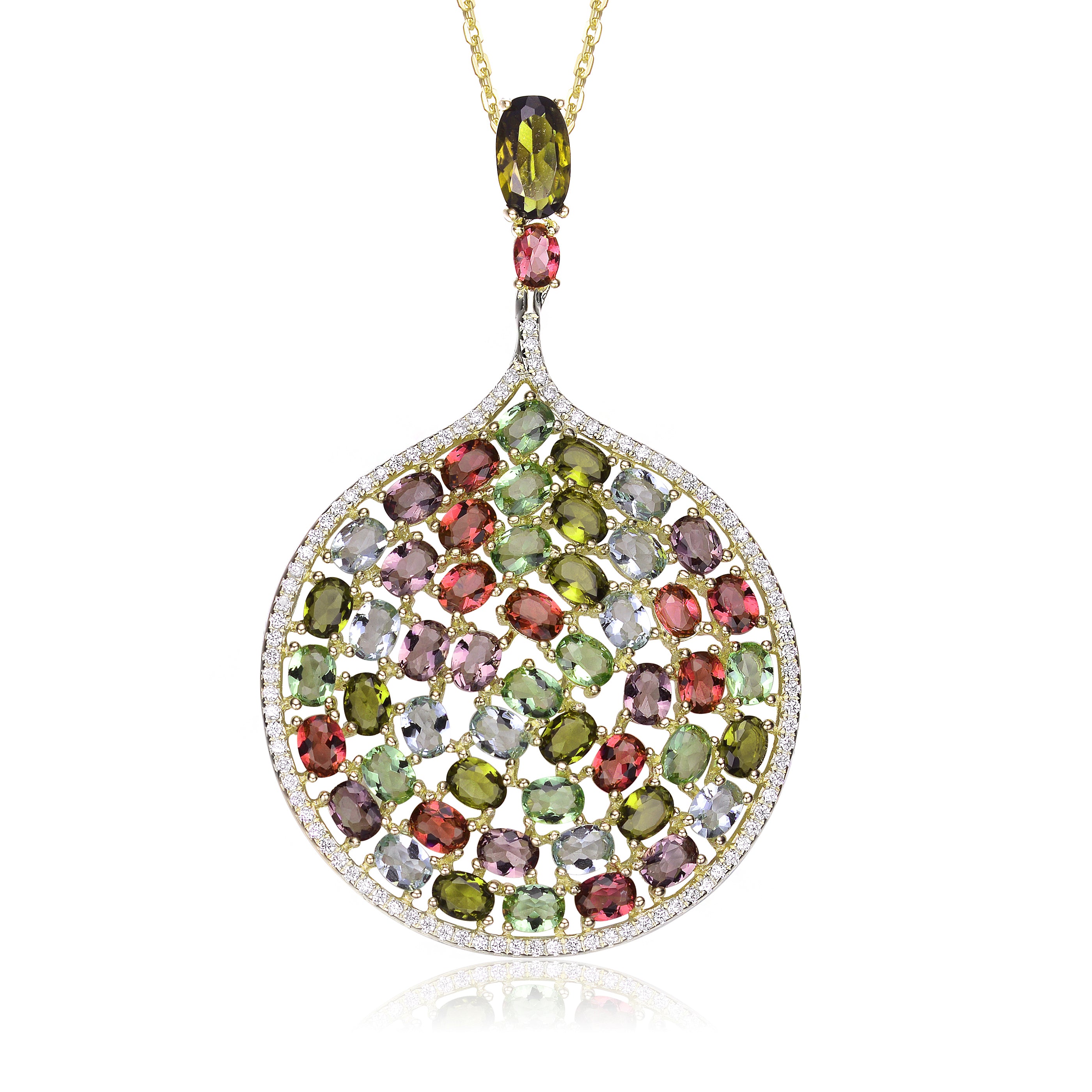 This 14K Gold Plated Multicolor Cubic Zirconia Accent Round Pendant Necklace is a luxurious piece of jewelry that combines elegance and vibrant colors. The pendant features an array of multicolored cubic zirconia stones, each meticulously set to create a dazzling display of light and color. The round pendant is accentuated by the 14K gold plating, offering a warm, golden hue that complements the colorful gemstones beautifully.