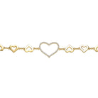 Show how much you care by gifting this pretty heart charm bracelet to any person in your life! Pretty shiny heart charms and cubic zirconias adorn this 14k yellow gold plated sterling silver charm bracelet. A lobster clasp and an extension chain keep it secure. length 6.5+1 Inch.