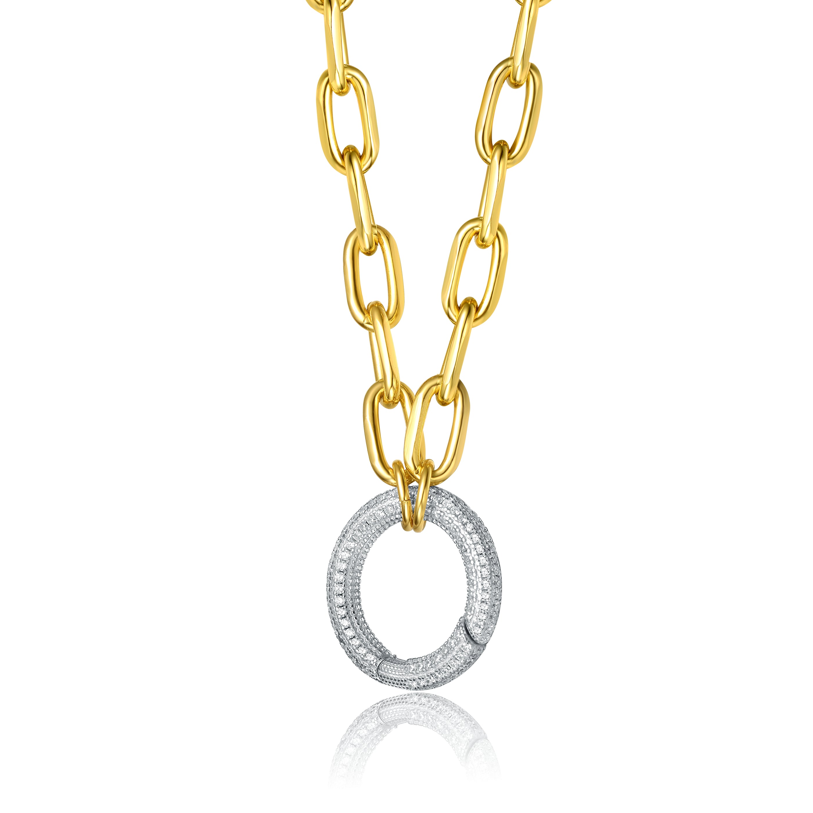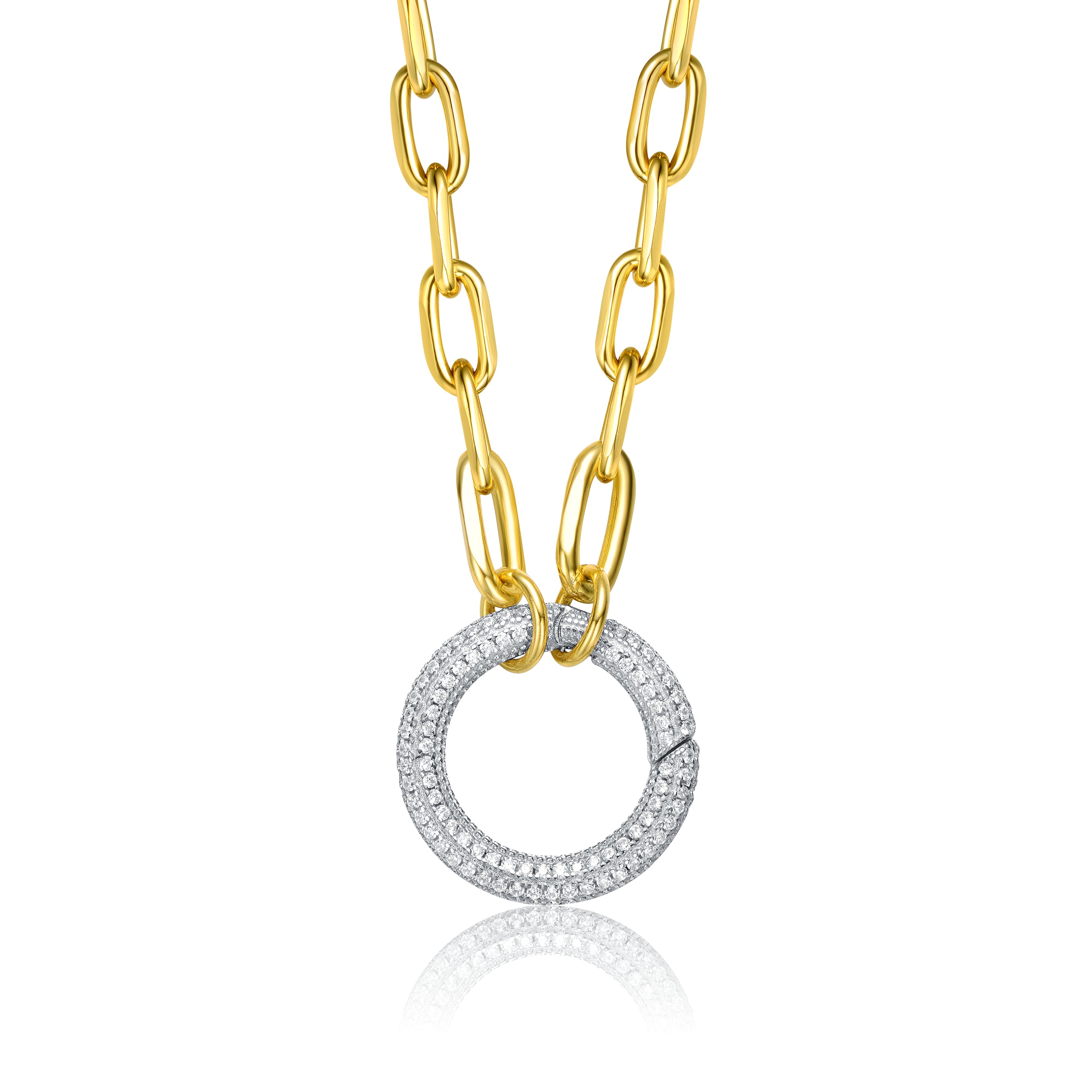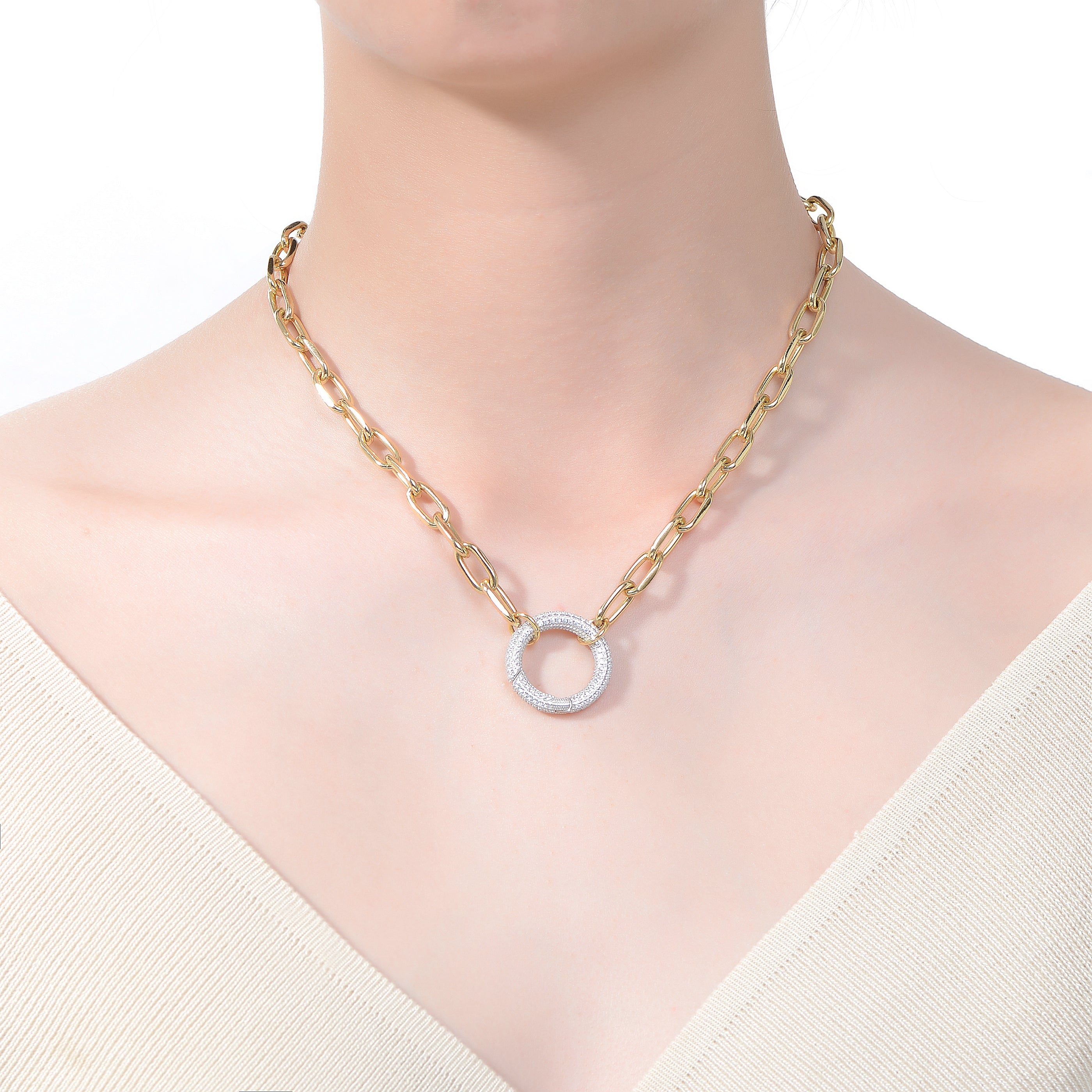Let's get a magical sparkle with this gorgeous round-brilliant piece of jewels!This dazzling Circle Pendant Chain is a perfect combination of glamor and glitz which makes you rock on your special occasion. Beautifully featuring stunning circle shape, with the cutest cut cubic zirconia in high-quality Sterling Silver which glows brilliantly when worn. The lustrous 14k Gold-plated Chain also gives this pendant a classic look. So, be ready to feel like a princess!
