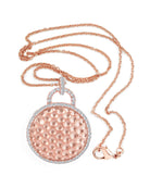 This necklace features a textured hammered pendant highlighted with round-cut cubic zirconia for subtle sparkle. Crafted from .925 sterling silver and finished with a luxurious rose-toned plating, the piece is polished to enhance its refined yet modern appeal. It fastens securely with a classic spring ring clasp for everyday comfort.