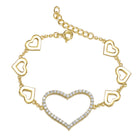 Add this enchanting heart charm bracelet to your collection! This beautiful 14k yellow gold plated sterling silver bracelet symbolizes love, happiness, and joy, giving it a bespoke inspiration and cherishable style. A spring ring clasp keeps it secure.