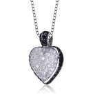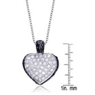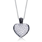 Cubic Zirconia Sterling Silver Black And Rhodium Plated Heart Shape Drop Pendant