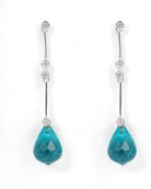 Glam to the last drop. a radiant,pear shape gorgeos blue dangels perfectly at the end of this luxurious earring. to complete the sophisticated style, the entire high polished rhodium piece is stationed with brilliant round, prong-set Cubic Zirconia.