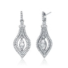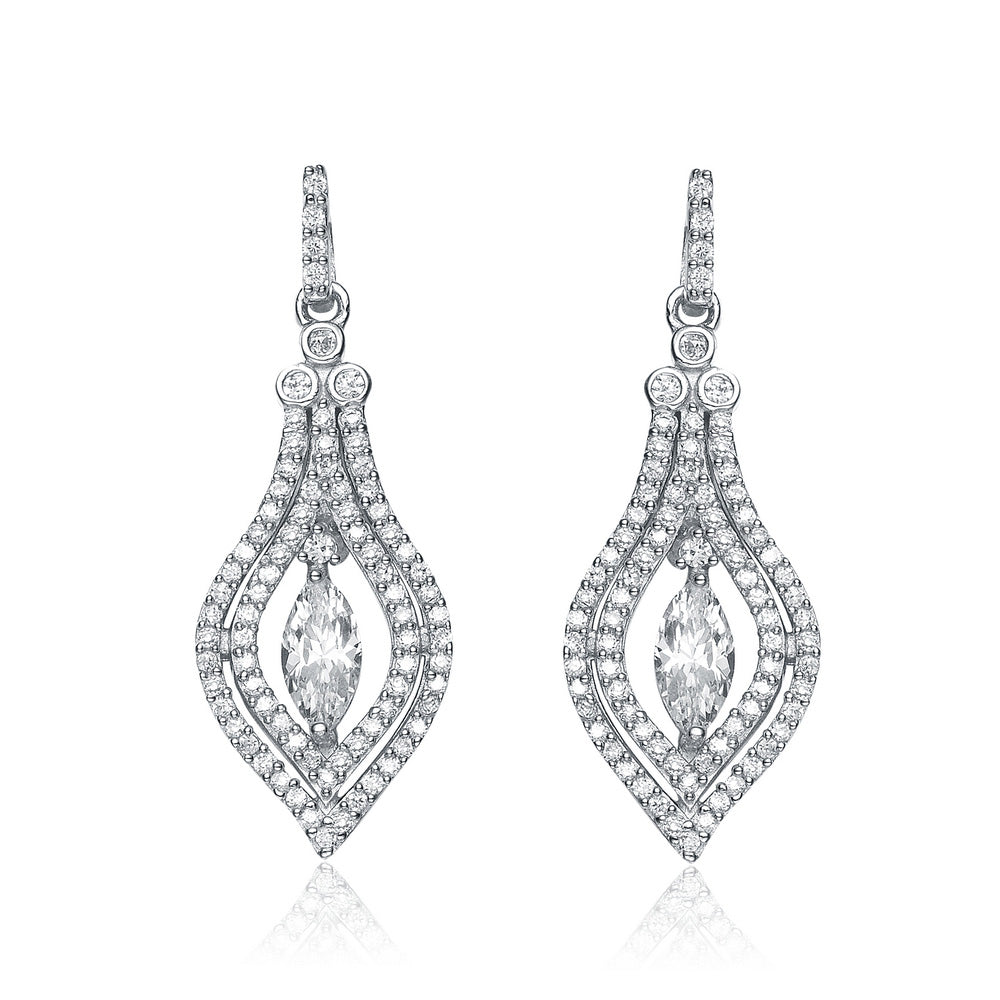 These fancy earrings feature white oval and round-cut cubic zirconia stones in bezel and prong setting. Crafted of 0.925 sterling silver, the earrings secure with butterfly clasps.