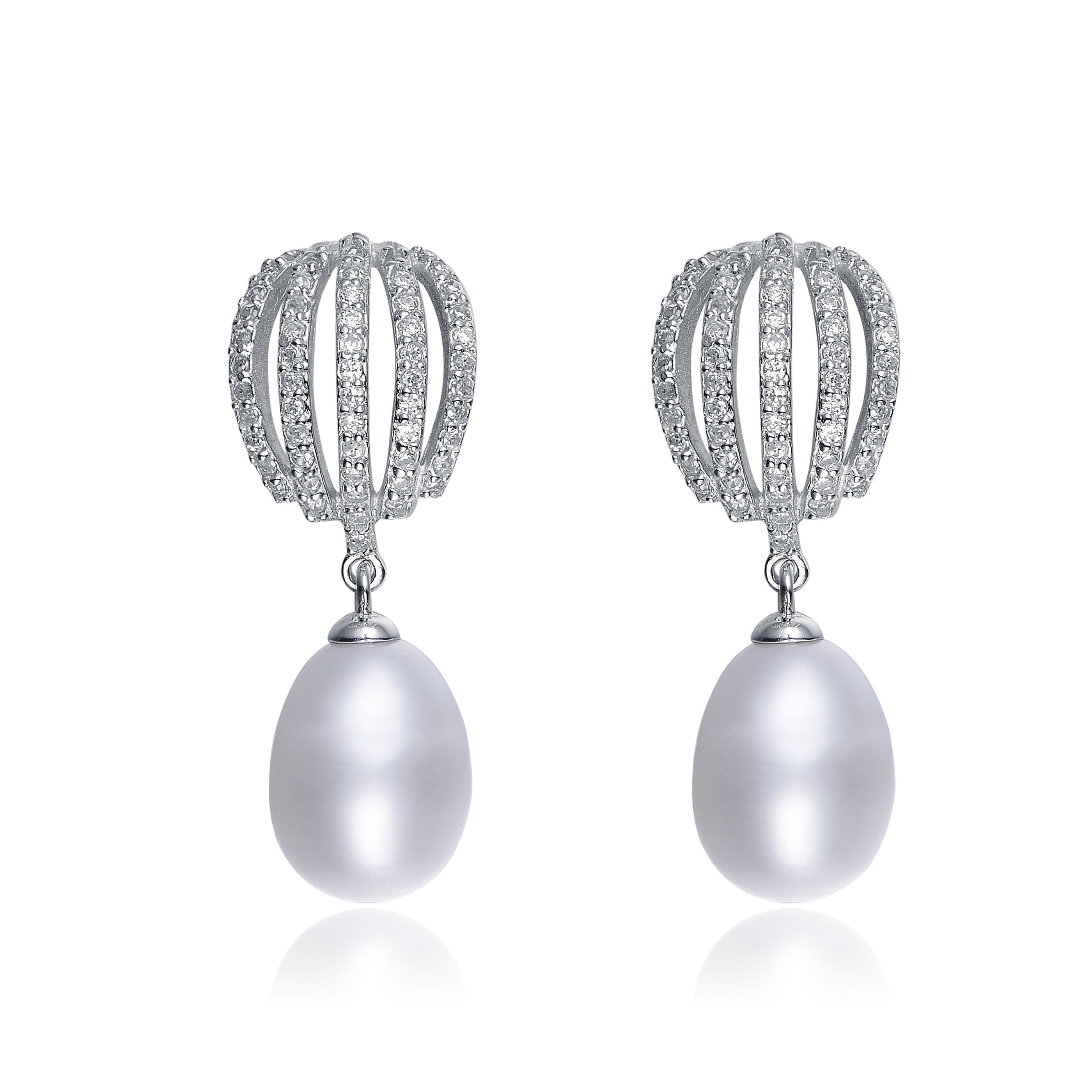 These fine faux pearl drop earrings are enhaced with round-cut cubic zirconia stones. Crafted of .925 sterling silver, the earrings secure with butterfly clasps.