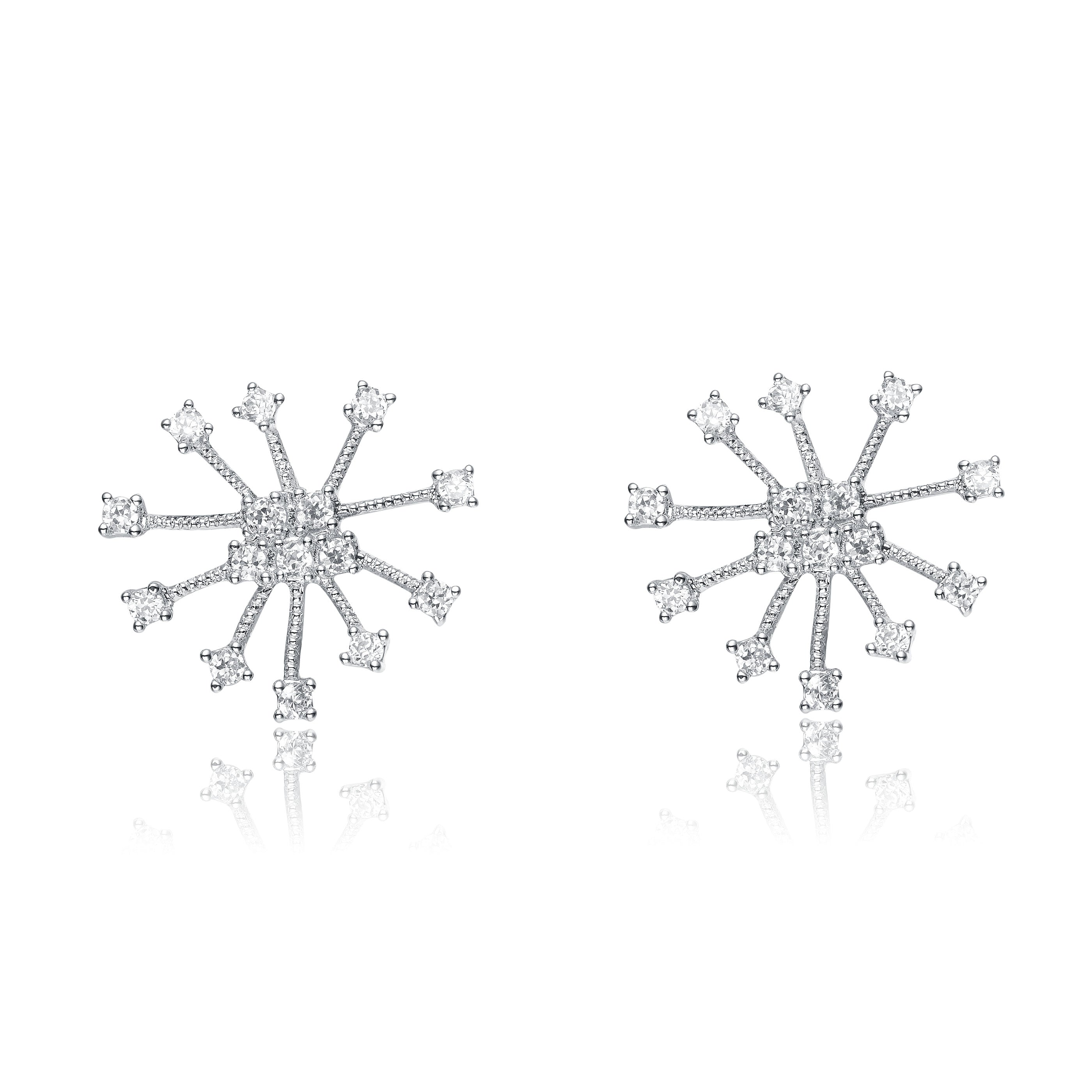 These sparkle earrings are decorated with dazzling white round-cut cubic zirconia stones. Crafted of .925 sterling silver, with rose plating, the earrings secure with butterfly clasps.
