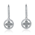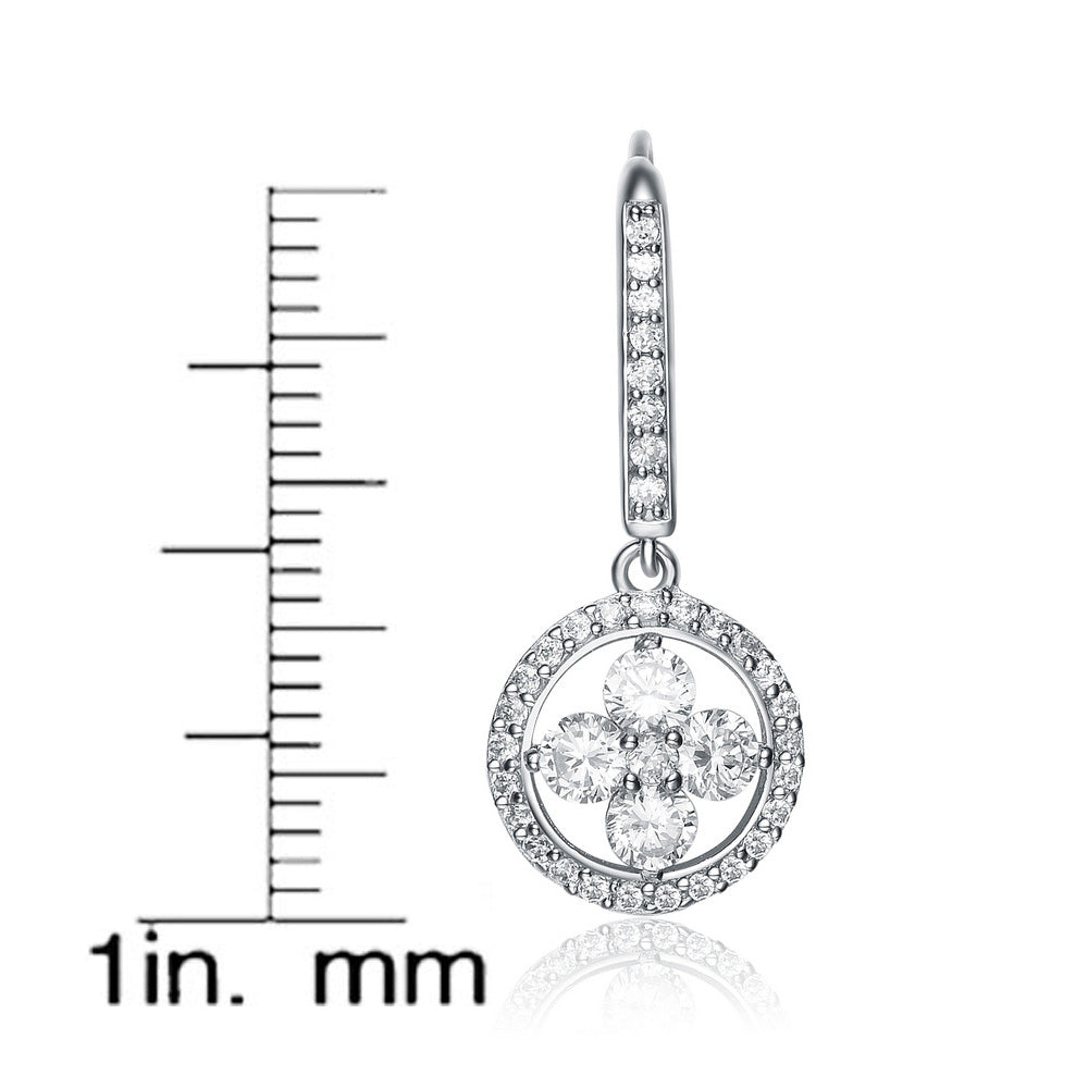Cubic Zirconia Sterling Silver Rhodium Plated Round Flower Design Drop Earrings