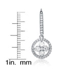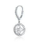 These fine dangling earrings feature a white round-cut cubic zirconia stone outlined with smaller ones. Crafted of .925 sterling silver, the earrings secure with euro clasps.