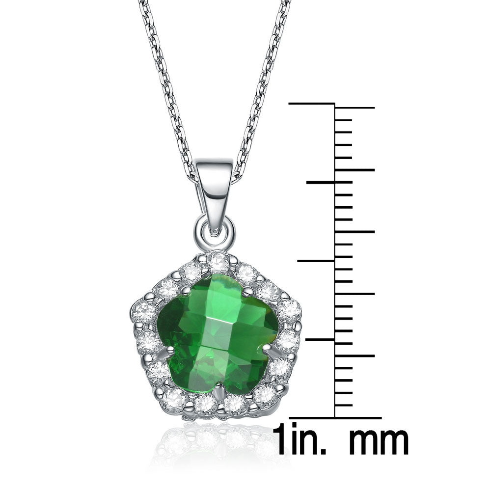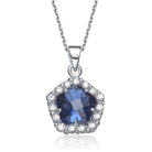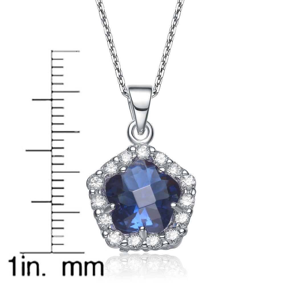 Cubic Zirconia Sterling Silver Rhodium Plated Sapphire Flower Shape Drop Pendant