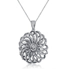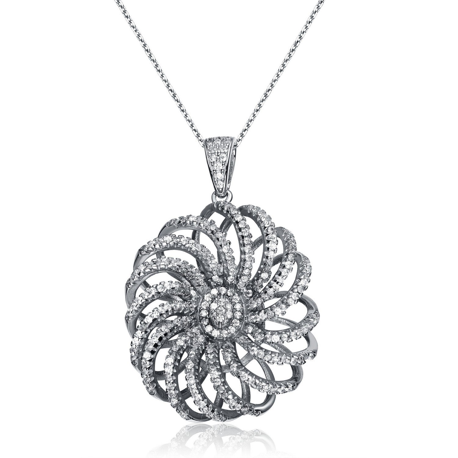 This pretty flower style features round white cz set in .925 Sterling silver. This pendant has open loops creating the look of a magnificent flower. It comes with an 18 inch chain and has a spring ring closure.