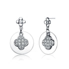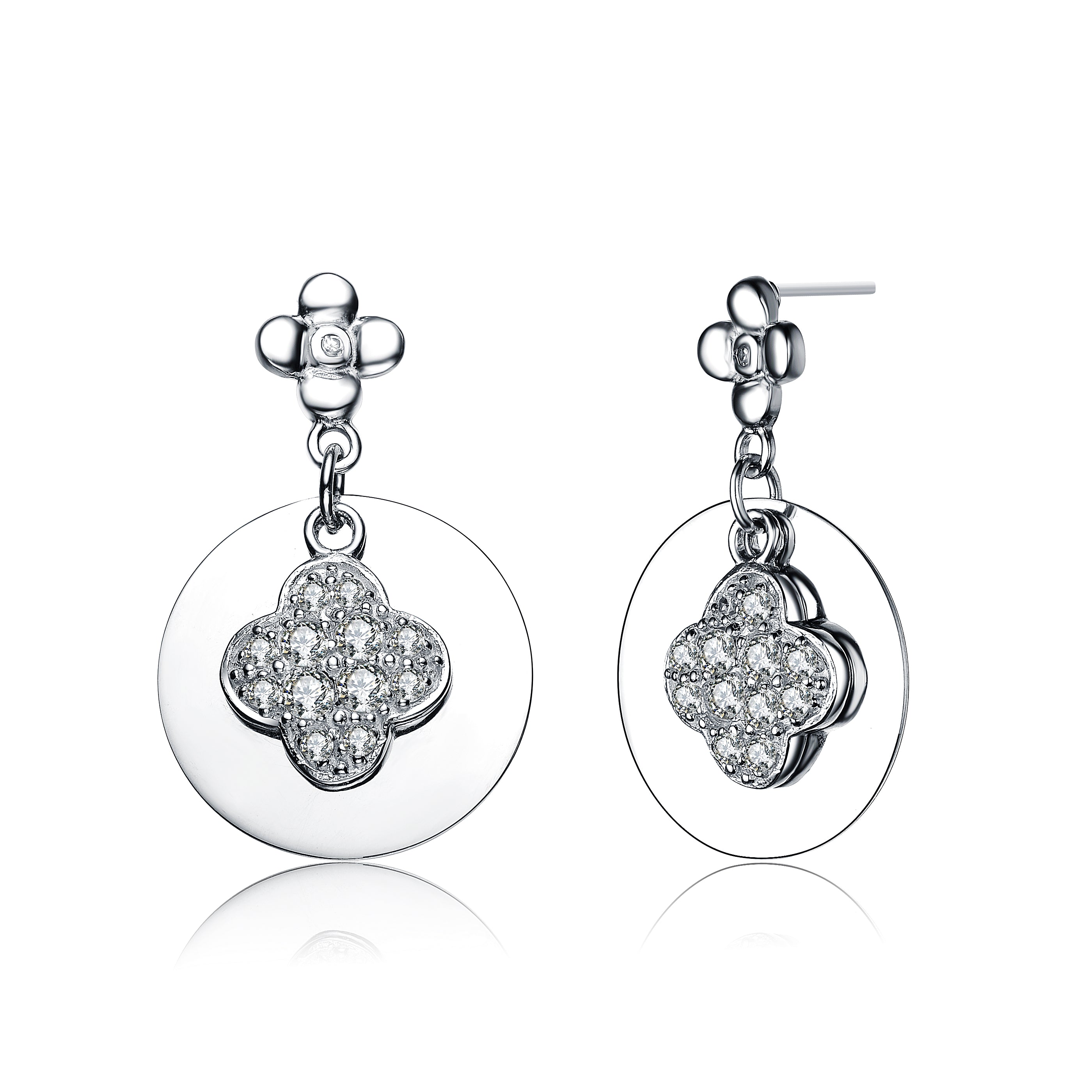 CZ SS Rhodium Plated Round Drop Flower Design Earrings