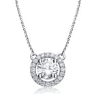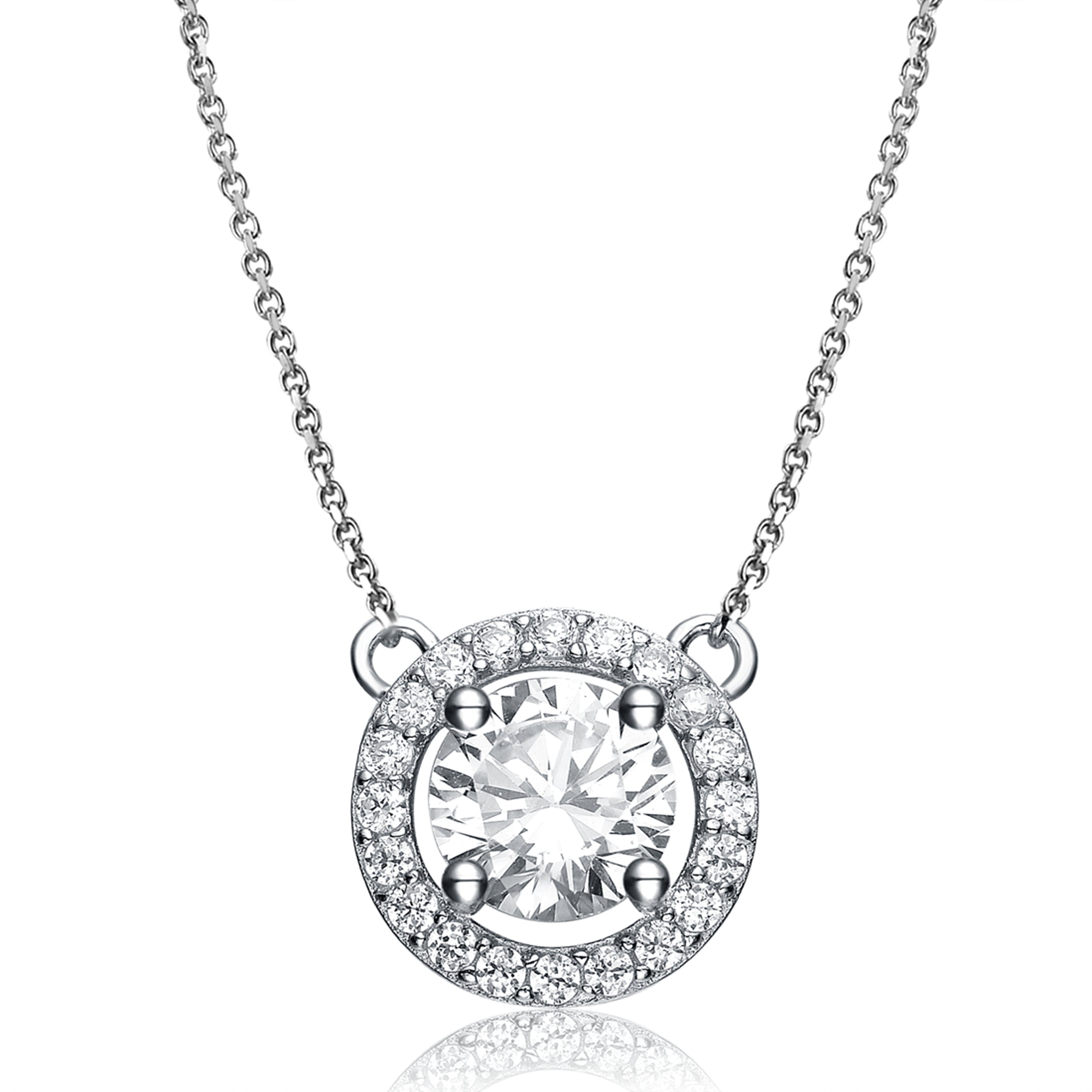 This rolo chained matinee necklace imbues a classic charm. A round silver rail encircles the flawless cubic stone standing firm at the fore of this piece.