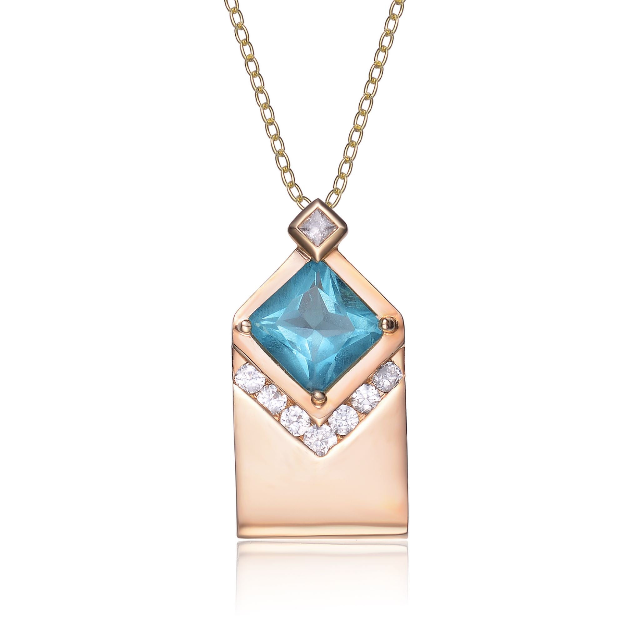 Gold Plated Blue Cubic Zirconia Envelope Necklace